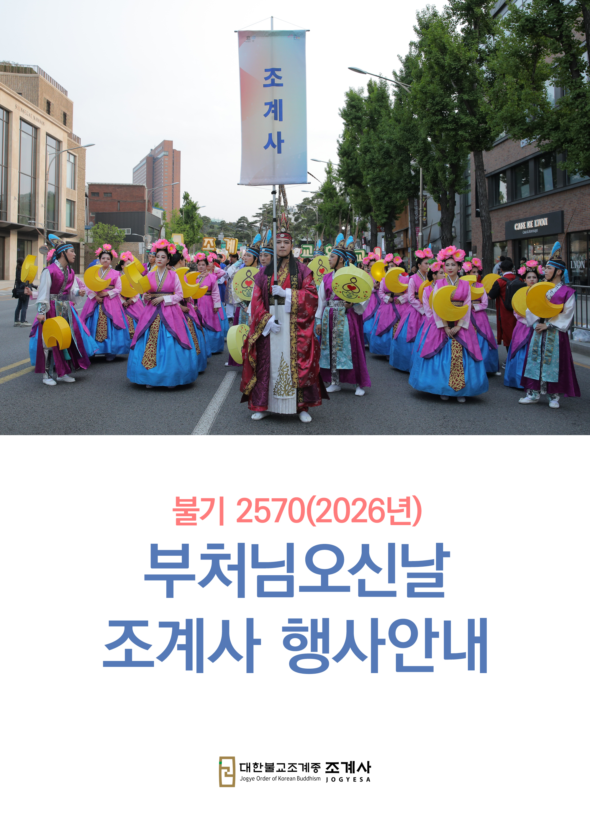 4월 7일 부처님오신날 맞이 48일기도입재가 봉행되었다. 2026년 4월 7일(화) 조계사 대웅전에서 부처님오신날 맞이 48일 기도를 입재했다.‘부처님오신날 맞이 48일 기도’는 48일간 매일 오전 10시 사시기도에 진행되며 회향은 5월 24일(일)이다. 불기 2570(2026)년 봉축 표어는 ‘마음은 평안으로 세상은 화합으로’이다. ●문의: 조계사 기도접수처 02-768-8500