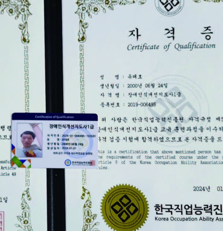 사실 유태호 불자는 상당한 유명인사입니다. 2010년 방영된 MBC 스페셜 ‘승가원의 천사들’ 편에서 씩씩하고 당차게 생활하는 날개 없는 천사 태호의 해맑은 미소가 전한 감동은 아직도 많은 이들의 뇌리에 깊이 남아 있습니다. 그로부터 15년이 지난 지금, 유태호 불자는 한 사회복지법인에서 장애인 자립 지원 공간 매니저로 일하면서 장애인 인권교육 강사로도 활동 중입니다. 저녁에는 사이버 강의로 전공학과 수업을 듣고, 매주 월요일마다 서울노인복지센터에서 라디오 방송을 진행하며, ‘태시코기tv’라는 개인 유튜브 채널도 직접 운영합니다.