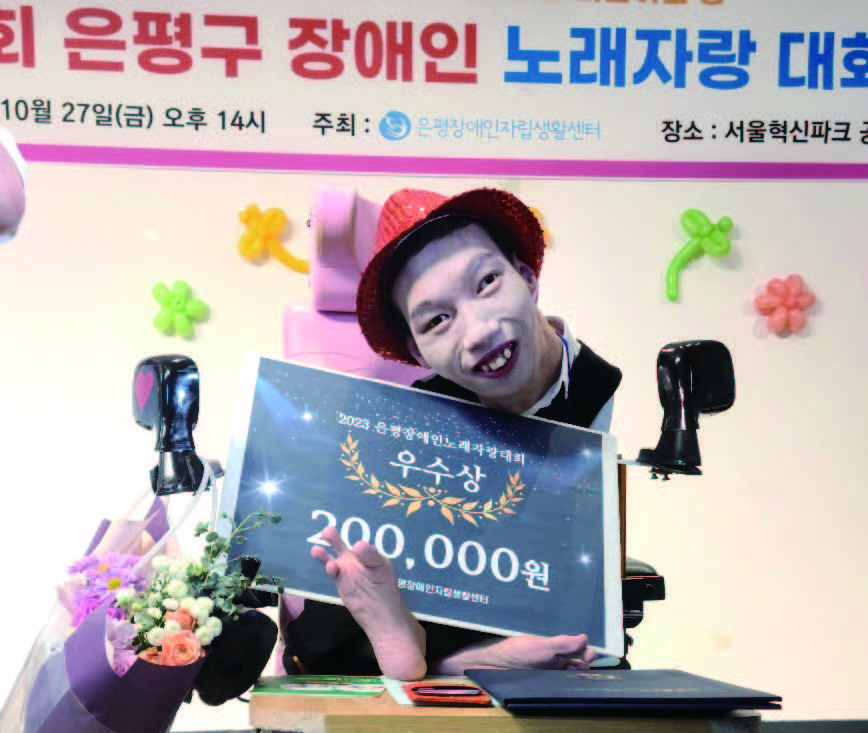 하지만 그런 유태호 불자에게도 좌절의 시기는 있었다고 합니다. 열일곱 살 무렵 척추측만증 악화로 늑골에 폐가 눌려 수면 중 호흡이 멈추는 지경에 이르렀고, 결국 8시간의 대수술을 받았지만 그 결과 손대신 사용하던 발을 자유롭게 쓰지 못하게 되었습니다. 행동의 자유를 빼앗긴 것입니다. “그때 처음으로사춘기가 왔었어요. 방에만 틀어박혀 있었고, 많이위험한 생각까지 한 적도 있었죠.”인생 최초의 좌절이 닥쳤을 때 유태호 불자를 지탱해준 사람은 생후 3개월부터 그를 돌보아주신 지웅스님이었습니다. 때로는 타이르고, 때로는 한없이품어주고, 때로는 혼을 내기도 하며 힘든 수술과 재활훈련의 고비를 함께 이겨낸 지웅스님은 그에게는제2의 ‘엄마’와 같은 분입니다. “마음으로 기르면 그것이 부모”라고 말씀하시는 지웅스님에게서 평범한가정의 부모 자식이 나누는 정을배우고 일상의 소중함을 알게 되었다고 유태호 불자는 말합니다. 지금도 하루에 수십 번 통화를 할 만큼 사이가 돈독한 지웅스님의 영향 아래, 그가 불교에 귀의한 것은어쩌면 자연스러운 일이었습니다. 매일 아침에 일어나서, 그리고 밤에 잠들기 전 부처님께 항상 절을 올린다고 하는 유태호 불자의 간절한 발원은 ‘오늘 하루도 건강하게’. 조계사 대웅전 아미타부처님 개금불사에 대해 지웅스님께 듣고 동참을 결심한 것도 비슷한 맥락입니다. “자립을 시작한 다른 장애인들 모두건강하게 지내고 안정된 삶을 이어갈 수 있도록 부처님께서 지켜주셨으면 했어요.”그가 써내려가는 매일의 기적그림도 그리고 시도 쓰는 청년, 유태호 불자. 그는 낯선 곳으로 혼자 외출하기를 두려워하지 않고, 여행하는 것을 좋아합니다. 한식 요리도 자주 하고, 요즘에는 텅드럼이라는 악기 연주에 관심이 많습니다. 곧 노래경연대회 출전도 앞두고 있습니다. 말하자면, 그는 자신에게 주어진 모든 시간 최선을 다해서 최대한경험하고 도전하기를 원하는 듯했습니다.의료진은 성년이 되기 어렵다고 했지만, 그는 이미스물여섯 살입니다. 매일매일 기적을 만들어가고 있는 셈입니다. 유태호 불자에게 살아간다는 것은 어떤의미일까요? “저는 제가 살아온 것들이 스스로 써내려간 이야기라고 생각해요. 누구에게든 보여주고싶고, 자랑하고 싶은 그런 이야기요.” 몸이 불편해도 얼마든지 충만한 인생을 누릴 수 있다는 것을 증명해내고 싶다는 말이었습니다.유태호 불자의 꿈은 무엇인지 물었습니다. “미국의주디스 휴먼이나 일본의 『오체불만족』 오토다케 히로타다처럼, 장애인 인식 개선에 기여하는 강연 전문가가 되고 싶어요. 그리고 무엇보다도, 스님께 효도하고 싶어요.” 지웅스님을 바라보며, 그는 활짝 웃었습니다.