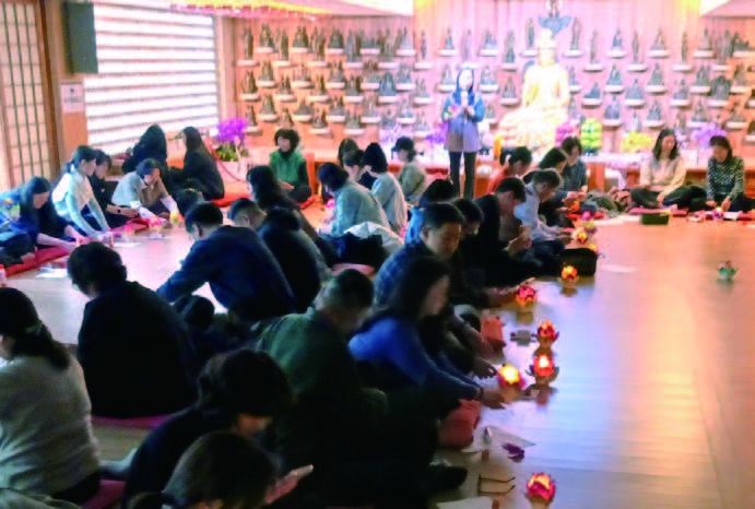 올웨이즈와 템플체험형에 참여한 80여명의 내외국인들은 정성스레 종이 연꽃을 만들어 자애명상을 했으며, 자신만의 마음 꽃을 품고 환한 미소를 지어 보였습니다. 스님과의 차담 통역을 통해 외국인들에게 한국의 따뜻한 정을 전할 때마다 가슴 한구석이 벅차올랐습니다. 또한, 4회에 걸쳐 진행된 신행국 주최 ‘법등송년회’를 위해 총 243명분의 연꽃을 직접 제작하고 프로그램을 이끌며 한 해를 아름답게 갈무리했습니다.