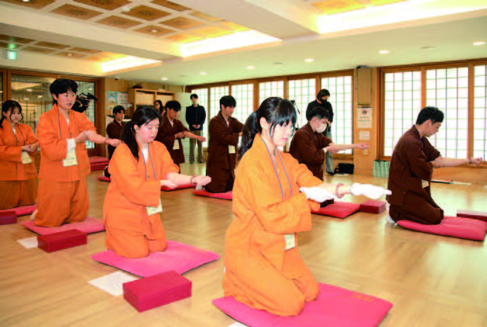 2025년 하반기에는 발우공양 행사와 동지행사를 진행하며 템플스테이를 널리 알렸고, 참가자뿐 아니라 조계사를 방문하는 신도와 일반인들에게도 다양한 체험의 기회를 선사했습니다. 관음전 1층 템플지원팀 데스크로 참가자들이 오시면, 가장 먼저 상냥한 미소로 수련복과 필요한 물품을 전달하고 편안히 쉴 수 있는 방을 안내해 드립니다. 1박 2일 동안 진행되는 프로그램에 대한 오리엔테이션을 진행하고, 사찰예절로 차수와 합장, 삼배하는 방법을 알려드립니다.