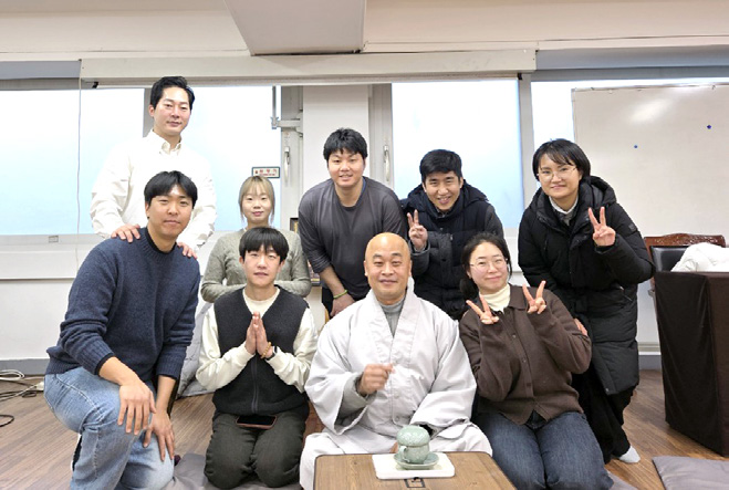 새벽 기도를 마친 뒤에는 청년회 지도법사 선범스님과 함께 차담과 마음나누기의 시간을 가졌습니다. 따뜻한 차 한 잔을 나누며 새해 덕담과 격려의 말씀을 주고받는 가운데, 청년 법우들은 도량에서 함께 수행하는 인연의 소중함을 다시 한 번 되새겼습니다. 편안한 분위기 속에서 이어진 대화는 청년들에게 수행의 방향과 마음가짐을 돌아보는 소중한 시간이 되었습니다.