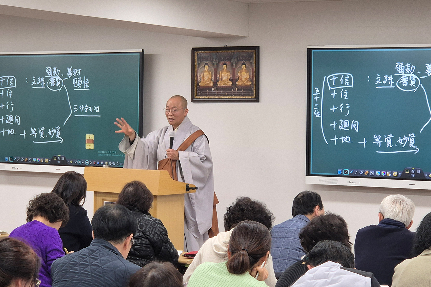 조계사 2026년 제1차 청년·대학생 단기출가생 행자들이 총무원장 진우스님께 인사를 드렸다. 이날 인사 자리에는 조계사 주지 담화 원명스님을 비롯해 총도감 부주지 탄보스님 및 프로그램을 지도한 스님들과 함께 대학생 단기 출가행자들이 참석해, 단기출가 소감과 앞으로의 다짐을 전했다. 총무원장 진우스님총무원장 진우스님은 행자들에게 "내가 집착하는 것들 때문에, 그 반대편에서 외로움이나 고통이 따라 나오곤 하죠. 그 집착의 굴레에서 벗어나는 것, 그게 본래 출가의 의미입니다.출가는 단순히 물리적으로 집을 떠난다는 뜻이 아니에요. 여기서 말하는 ‘집’이란, 내가 지금 걱정하고 근심하는 마음, 무엇인가를 얻으려 애쓰는 마음, 한마디로 집착으로 인해 생겨나는 복잡한 생각과 번뇌를 말합니다. 그 번뇌에서 벗어나는 것이 출가의 본뜻이에요.그래서 여러분이 지금 마음속으로 품고 있는 근심과 걱정, 미래에 대한 불안, 우려 같은 복잡한 마음에서 벗어나는 것이 ‘진짜 출가’입니다. 그럼 어떻게 벗어날 수 있느냐. 생각을 너무 깊게, 너무 크게 할 필요가 없습니다. 그렇게 하면 오히려 스스로 혼란에 빠져 마음이 더 복잡해져요. 생각을 단순하게 하고, 지금 내가 보고 듣는 것들 속에서 늘 감사할 줄 알면 됩니다.그리고 ‘내가 지금 살아 있다, 내가 존재한다’는 사실 자체가 참 신기한 일이고, 축복이며 고마움이라는 마음을 가져보세요. 욕심을 조금만 줄여도 마음이 훨씬 가벼워집니다.세상은 ‘인드라망’이라고 하죠. 모든 것이 서로 연결되어 있기 때문에, 내 마음대로, 내 힘만으로 되는 일은 세상에 하나도 없습니다. 모든 것은 인연을 따라, 연기법에 따라 이루어집니다. 그러니 지나친 욕심이나 과한 바람을 내려놓으면, 오히려 그 관계망 전체가 나를 돕는 방향으로 돌아갑니다. 반대로 내가 너무 스스로 개입해 버리면, 다른 사람이나 다른 존재가 도와주려 해도 도움의 길이 막혀요. 그걸 ‘복’이라고도 합니다. 내가 내 복을 스스로 지우지만 않으면, 저절로 모든 것들이 나를 돕고 더 좋은 방향으로 이끌어 줍니다. 마음도 편안해져요.그러니 너무 복잡하게 생각하지 말고, “다 모두의 덕분이다” 이렇게 생각하는 것. 그게 진짜 출가의 의미이고, 출가자의 자세입니다. "라고 출가 행자들을 격려했다.