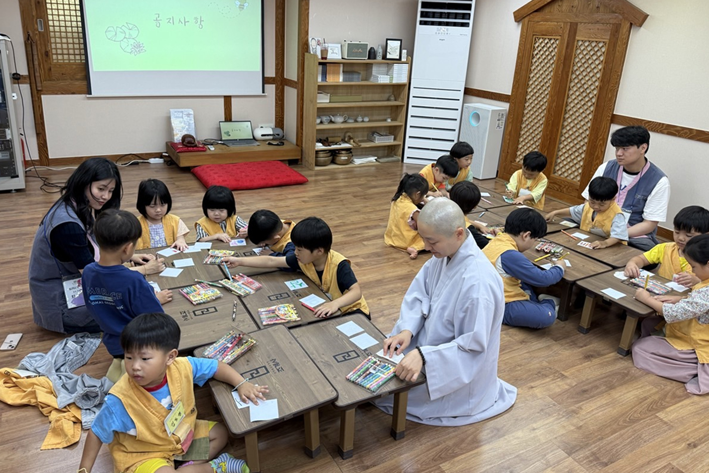 <고학년 법회>에서는 ‘교리 법회’로 스님께 사찰 내 전각에 대해 배우는 시간으로 진행되었다. 법우들은 스님의 설명을 들으며 각 전각의 의미와 역할을 이해하고, 사찰이 갖는 상징성과 역사적 가치를 깊이 알게 되었다. 법회를 통해 법우들은 불교 문화에 대한 지식을 넓히고, 더욱 뜻깊은 법회 경험을 쌓을 수 있었다.