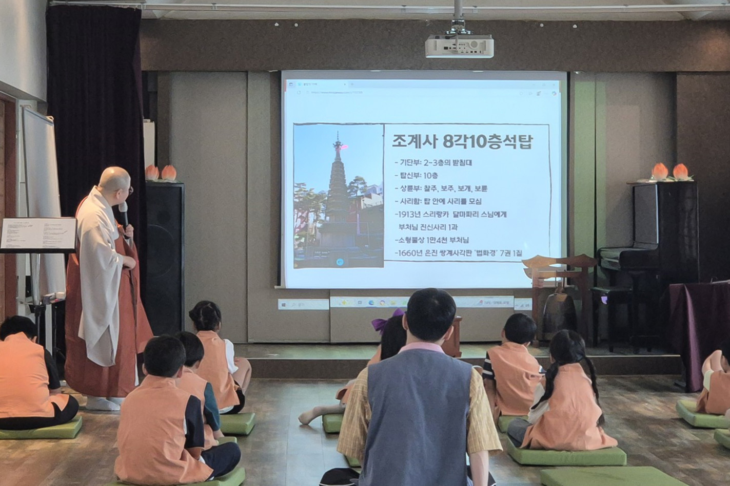 <저학년 법회>에서는 ‘문화 법회’로 진행되었다. 스님께서 불탑에 대해 쉽고, 재미있게 법문해 주셔서 아이들이 불탑의 의미와 부처님의 가르침을 이해하는 귀한 시간이 되었다.