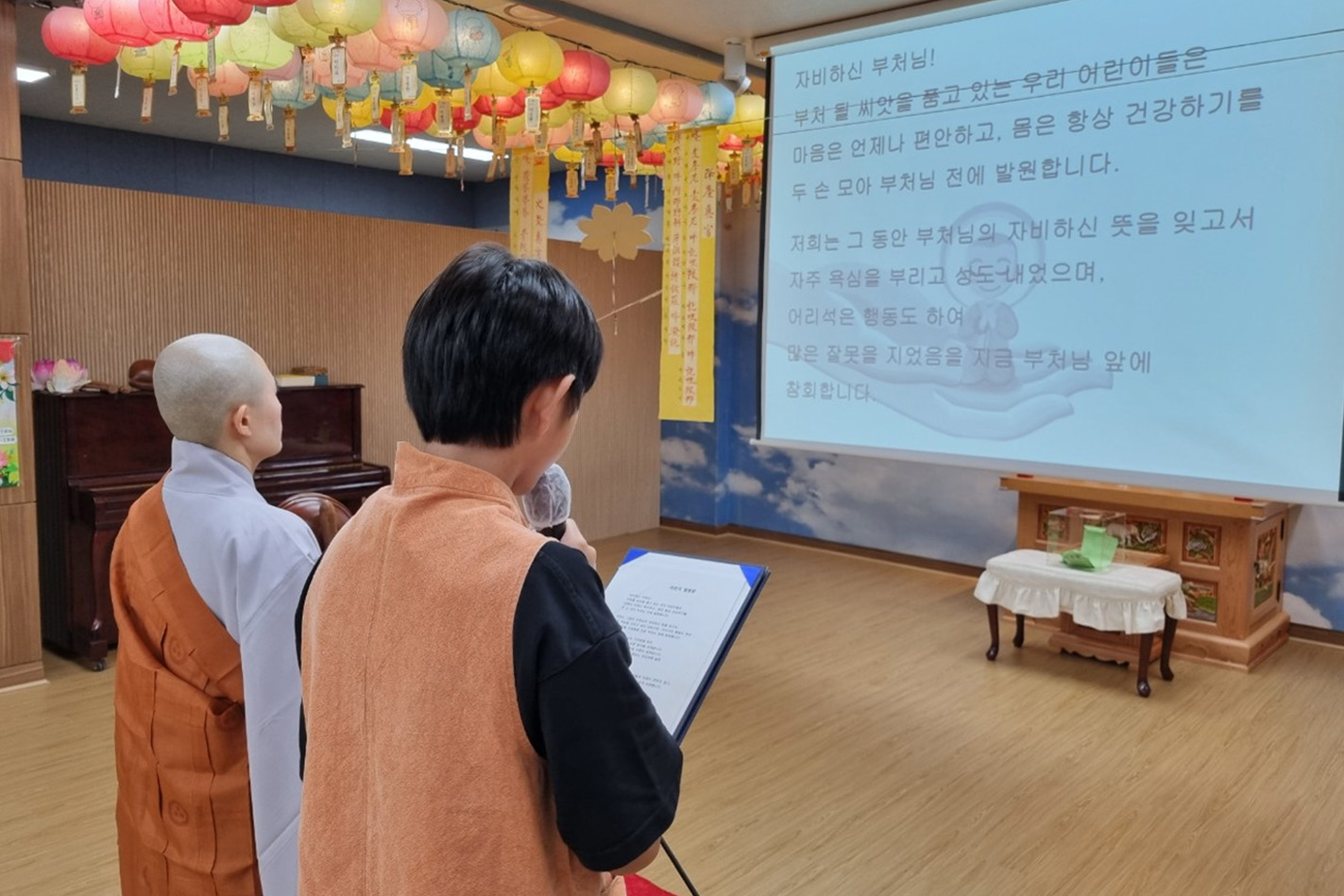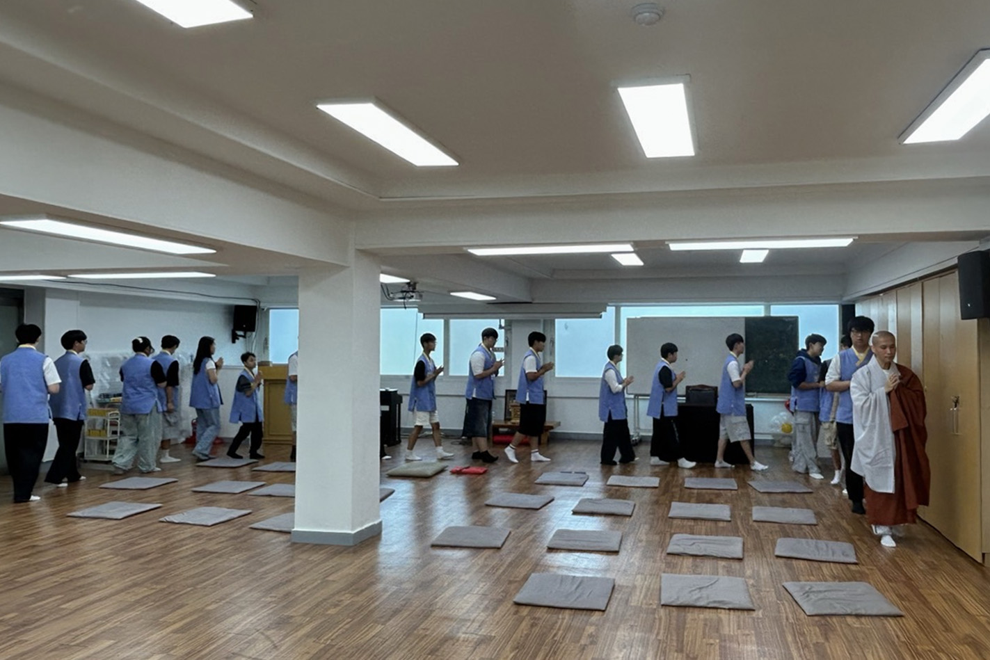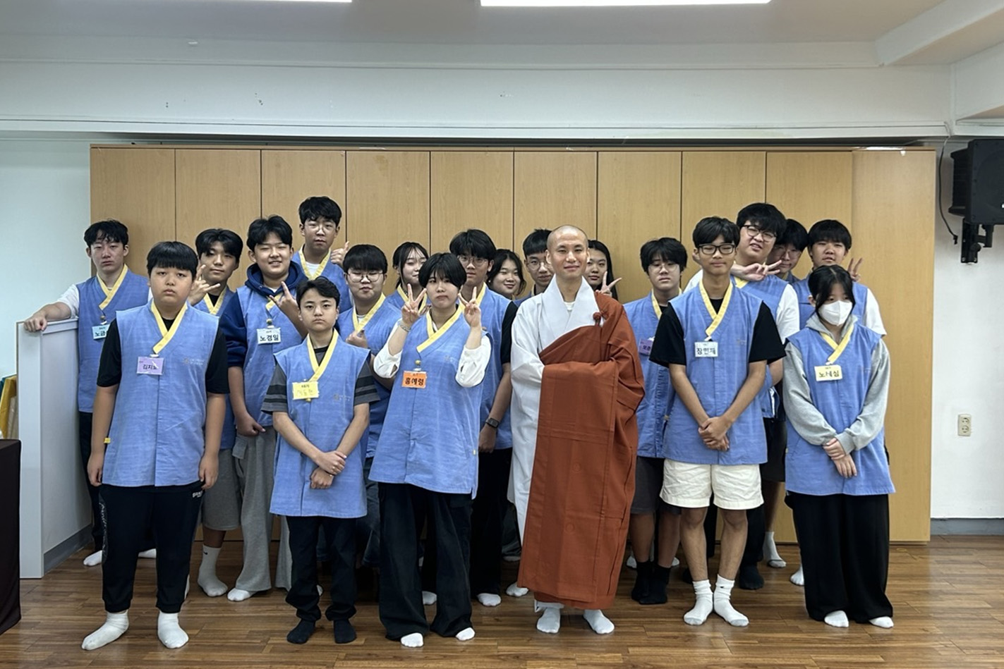 <청소년 법회>에서는 스님의 법문들 듣고 부처님의 가르침을 마음에 새기는 시간을 가졌다. 이후 법회에서는 치어리딩 연습을 통해 팀워크와 집중력을 키우며 활기차고 즐겁게 활동을 마무리하였다. 법회를 통해 법문과 신체 활동이 조화롭게 어우러지는 뜻깊은 시간이 되었다.