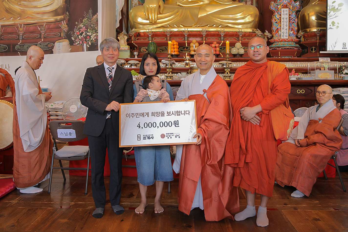 조계사 대웅전에서 '이주민 노동자 돕기 공동캠페인' 기금 전달식을 진행했다.