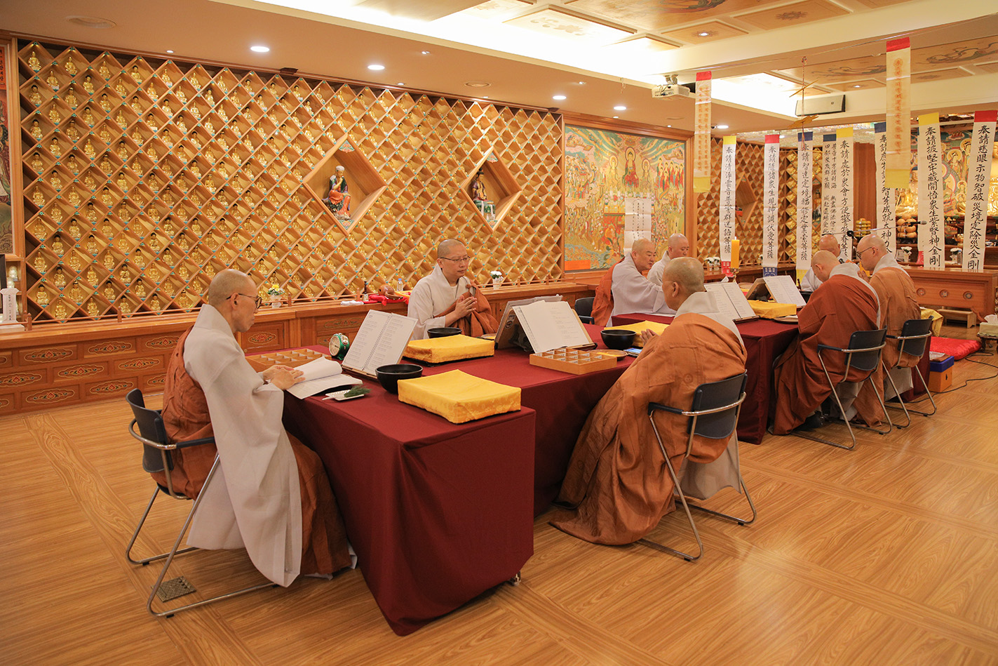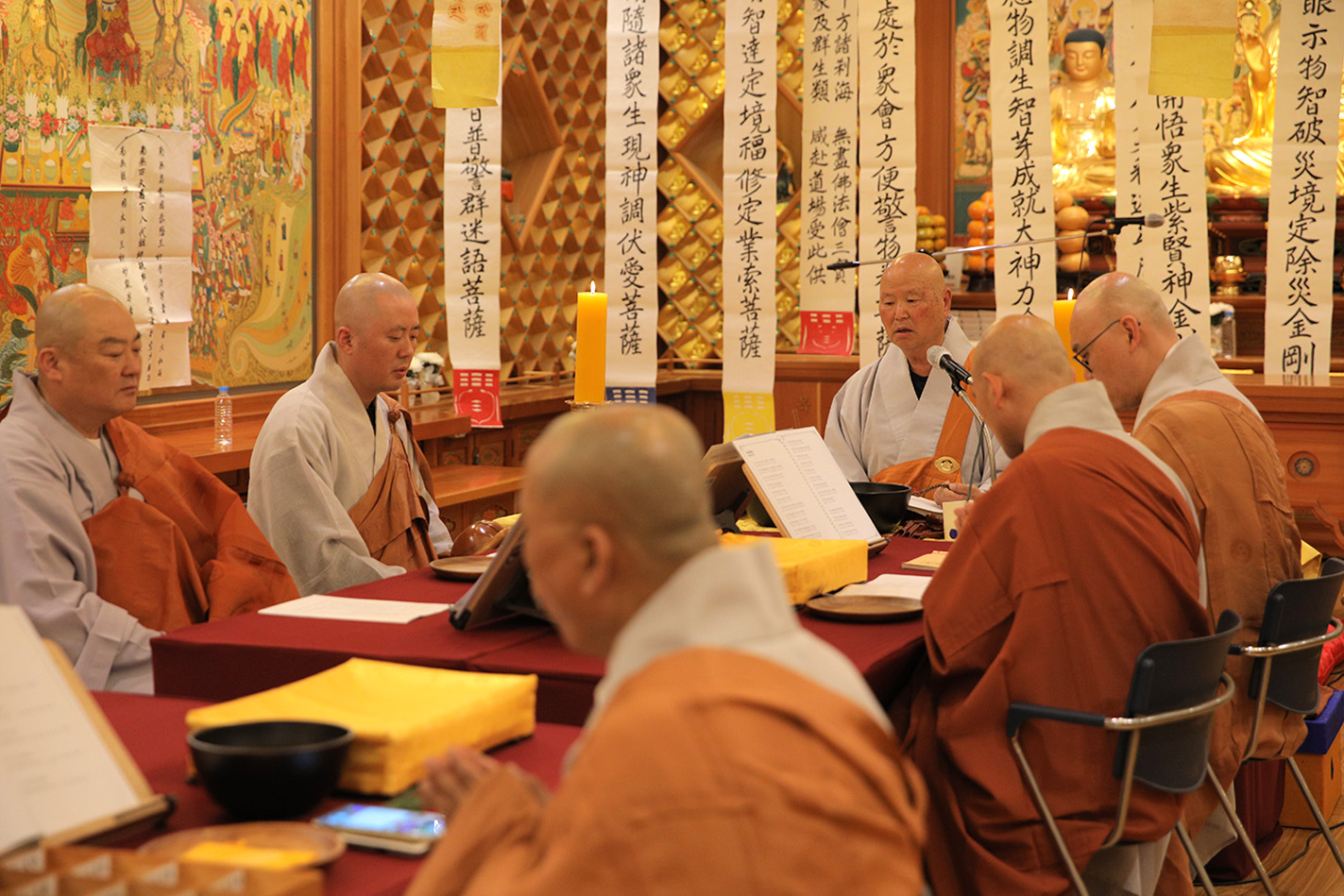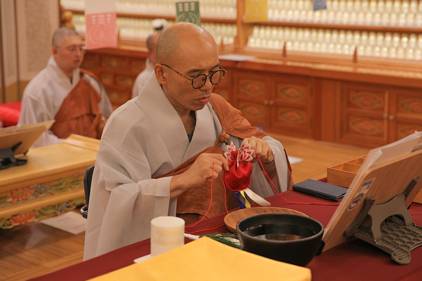 불기 2569(2025)년 10월 22일(수) 15시에 극락전에서 대웅전 삼존불 개금불사 1차 회향 아미타불 복장의식이 봉행되었다.