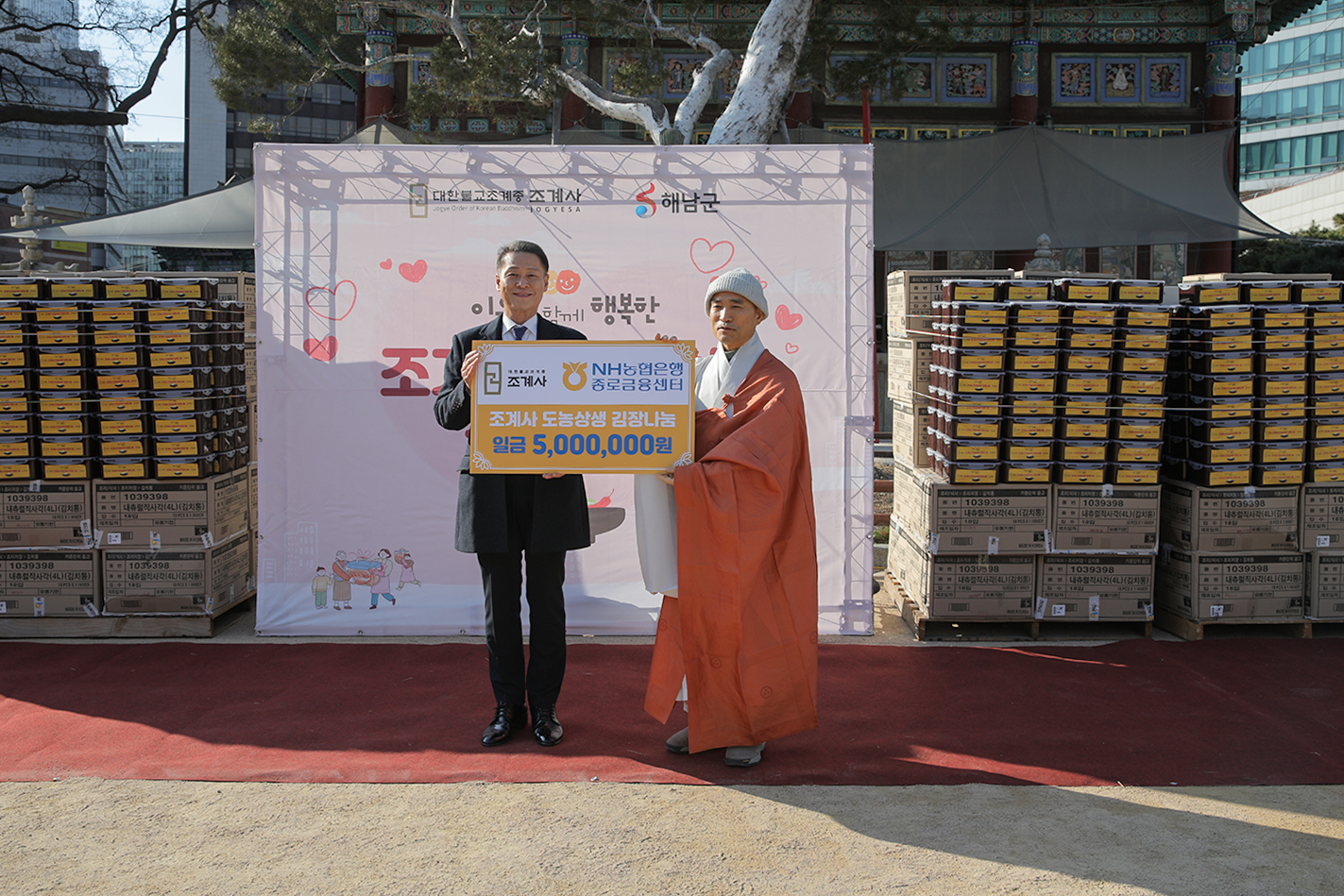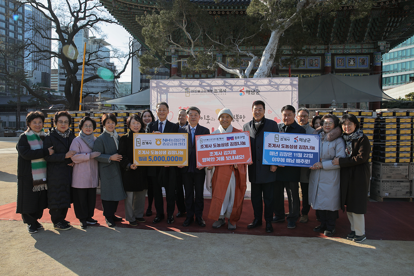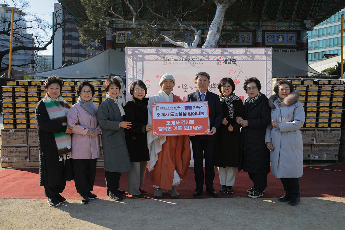 무애 이승현 신도총회장은 “오늘 준비된 김치가 부처님의 가르침처럼 종로구의 많은 분들께 도움이 되어 따뜻한 겨울을 보내는 데 보탬이 되길 바랍니다. 나아가 'K-컬처'처럼 조계사가 ‘K-불교’의 중심으로서 부처님의 가르침을 더욱 널리 전하는 역할을 하길 기대합니다.”라고 말했다.