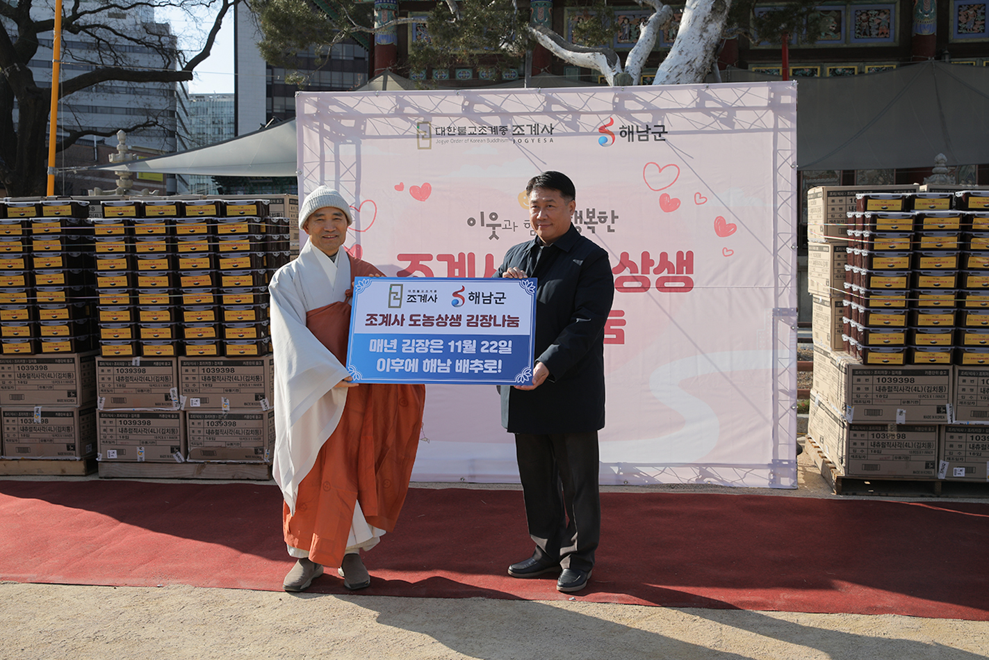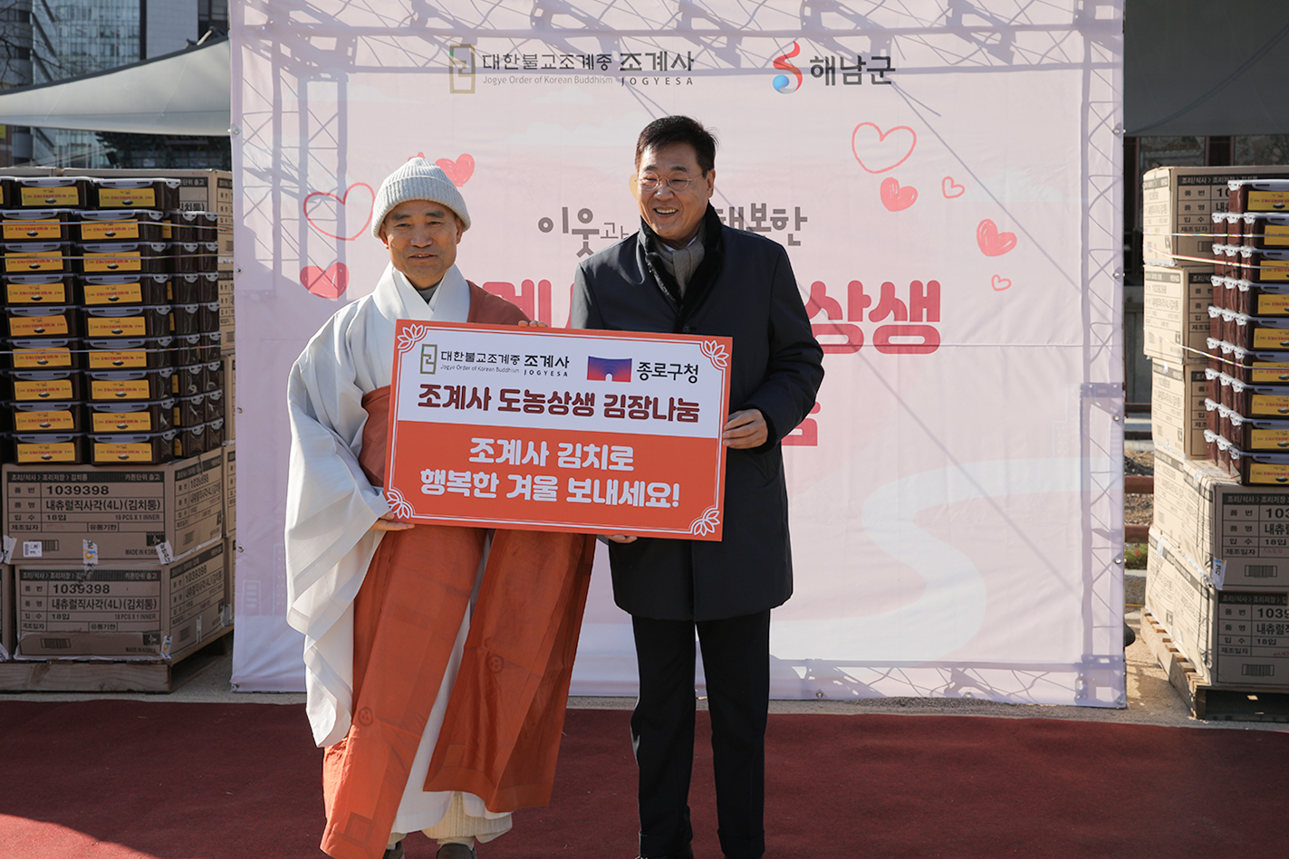 조계사가 마련한 김장 김치는 종로구 관내 어르신과 취약계층이 따뜻한 겨울을 보낼 수 있도록 부처님의 자비를 전하고, 도시와 농촌의 상생을 도모하기 위한 취지로 준비되었다.