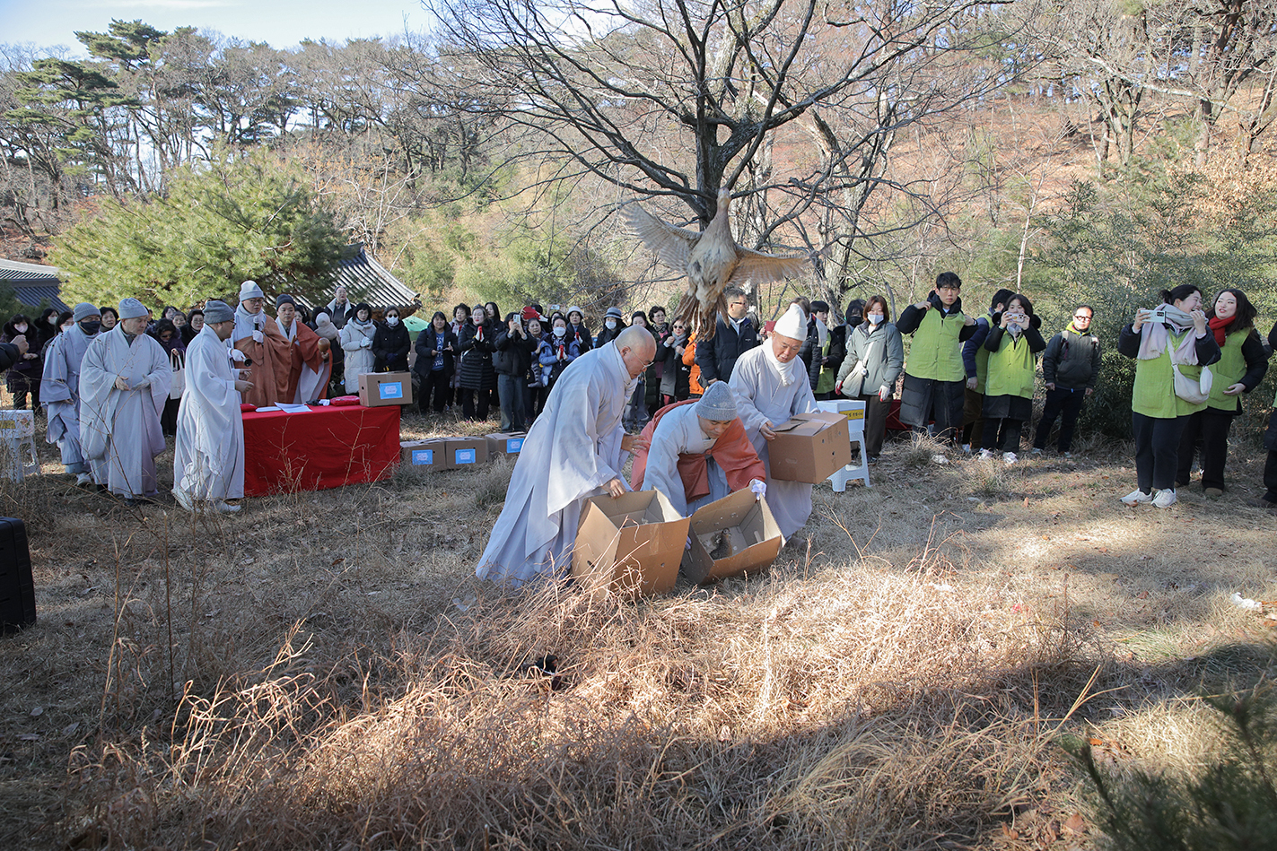 12월 30일(수) 대구 동화사에서 동안거 선원대중공양 · 꿩방생이 진행되었다.