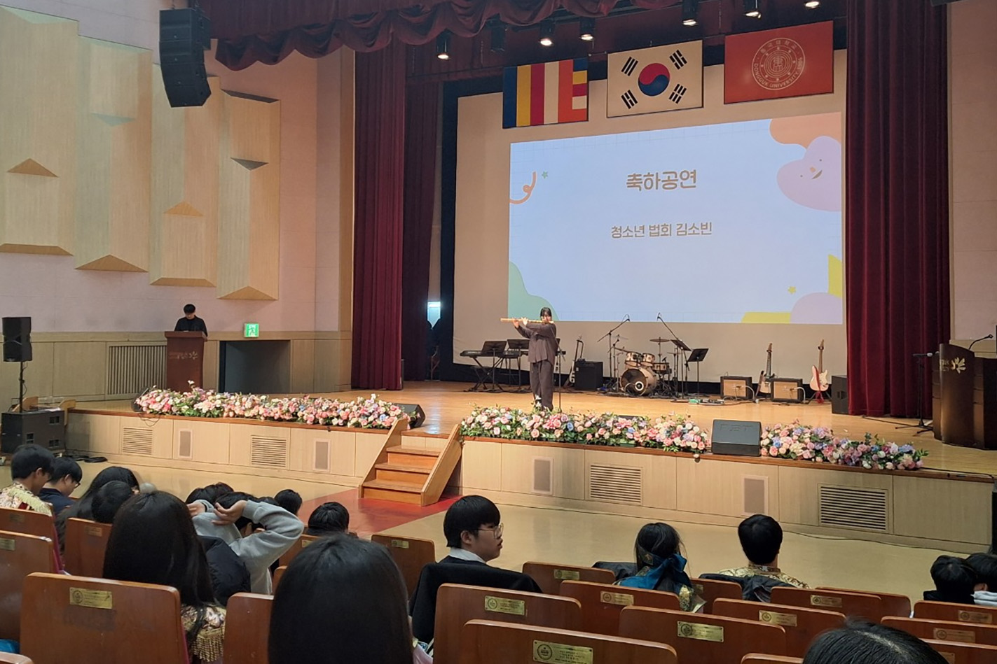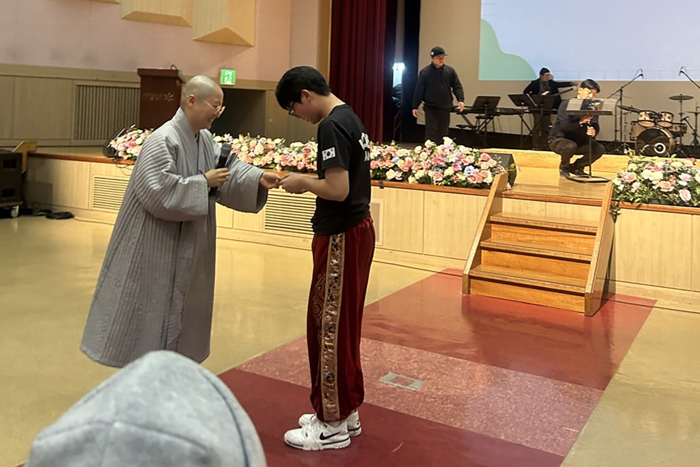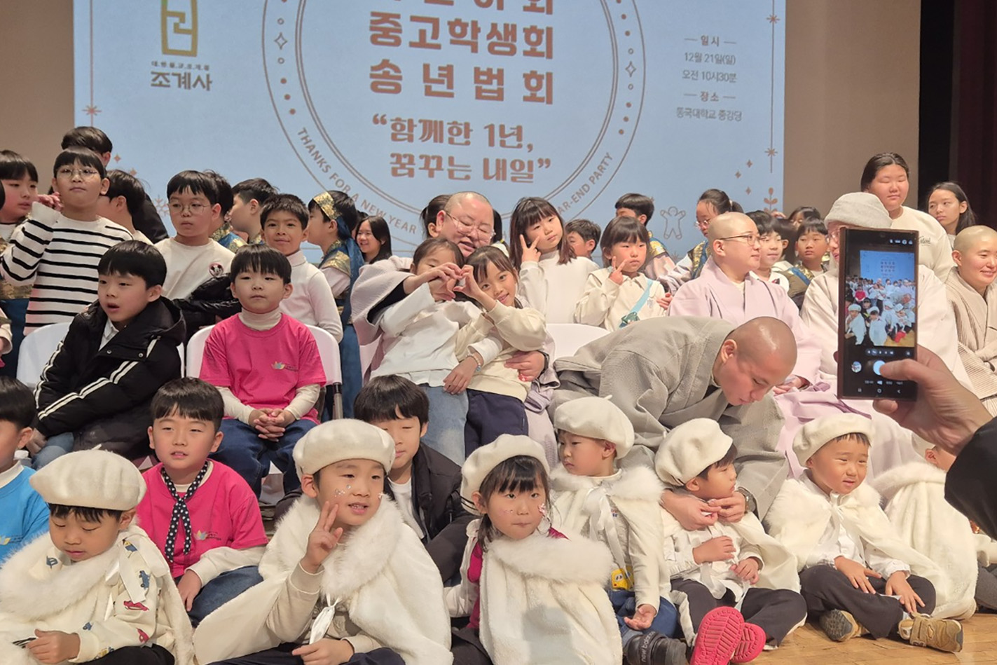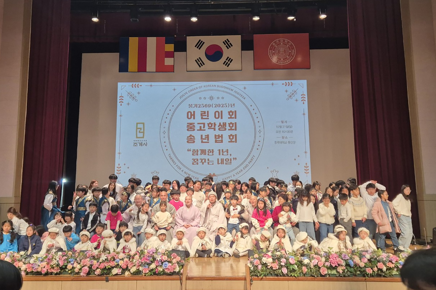 조계사 청소년 법회는 12월 21일 동국대 송년 법회에서 그동안 갈고닦은 치어리딩 공연을 늠름하게 선보여 사부대중의 찬사를 받았다. 활기찬 에너지로 무대를 장식한 법우들은 청년 불자다운 기개를 뽐내며 지난 1년간의 성장을 완벽하게 증명하였다. 공연 직후에는 곧바로 동국대 명진관으로 이동하여 제17회 나란다축제 불교교리경시대회에 응시하며 뜨거운 학구열을 보여주었다. 무대 위 열정적인 퍼포먼스와 고사장 안의 진지한 지혜가 하나로 어우러진 이번 활동은 법우들에게 매우 특별한 경험이었다. 2025년의 마지막을 열정과 지성으로 원만히 회향한 이번 송년 법회는 미래 불교 주역들의 가능성을 확인하는 희망찬 자리이었다.