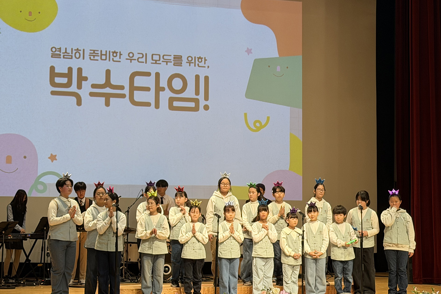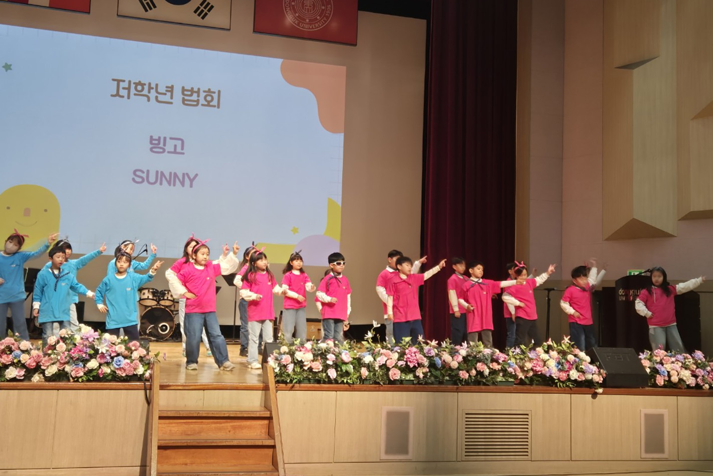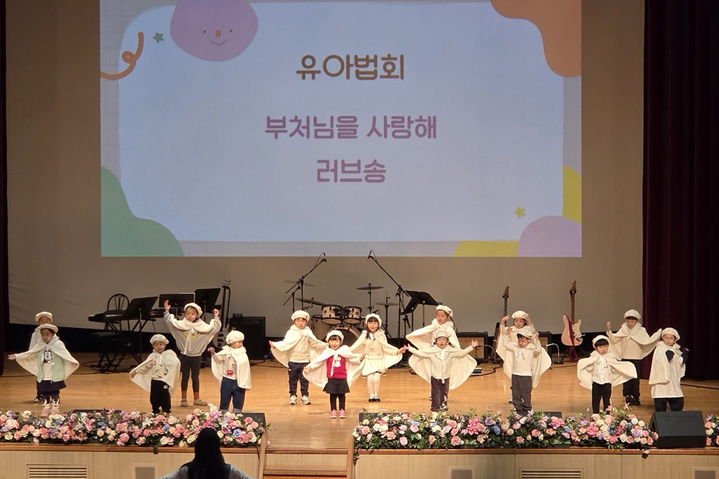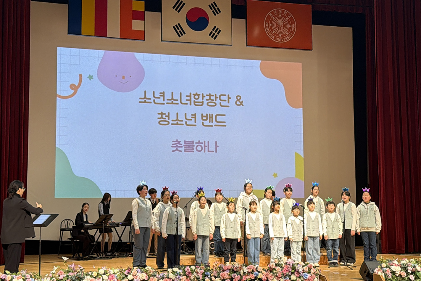 조계사 고학년 어린이법회는 12월 21일 동국대학교 중강당에서 열린 송년법회에서 그동안 구슬땀을 흘리며 준비한 난타 공연을 성황리에 선보였다. 법우들은 ‘하나의 가락’을 만들기 위해 매주 이어온 연습의 결실을 무대 위 완벽한 호흡으로 증명하며 사부대중의 뜨거운 박수갈채를 받았다. 공연의 열기가 채 가시기도 전에 법우들은 연이어 개최된 나란다축제 ‘범종을 울려라’교리대회에 대거 참여하여 그동안 쌓아온 불교 지식의 실력을 마음껏 겨루었다. 많은 법우가 용기 있게 도전하여 퀴즈를 풀며 도반들과 화합하고 지혜를 나누는 모습은 보는 이들에게 큰 대견함과 환희심을 선사하였다. 예술적 감성과 불교적 지성을 두루 보여준 이번 행사는 고학년 법우들이 부처님 품 안에서 늠름하게 성장했음을 알리는 뜻깊은 회향의 자리였다.