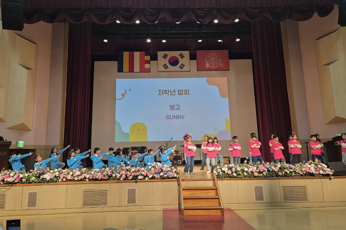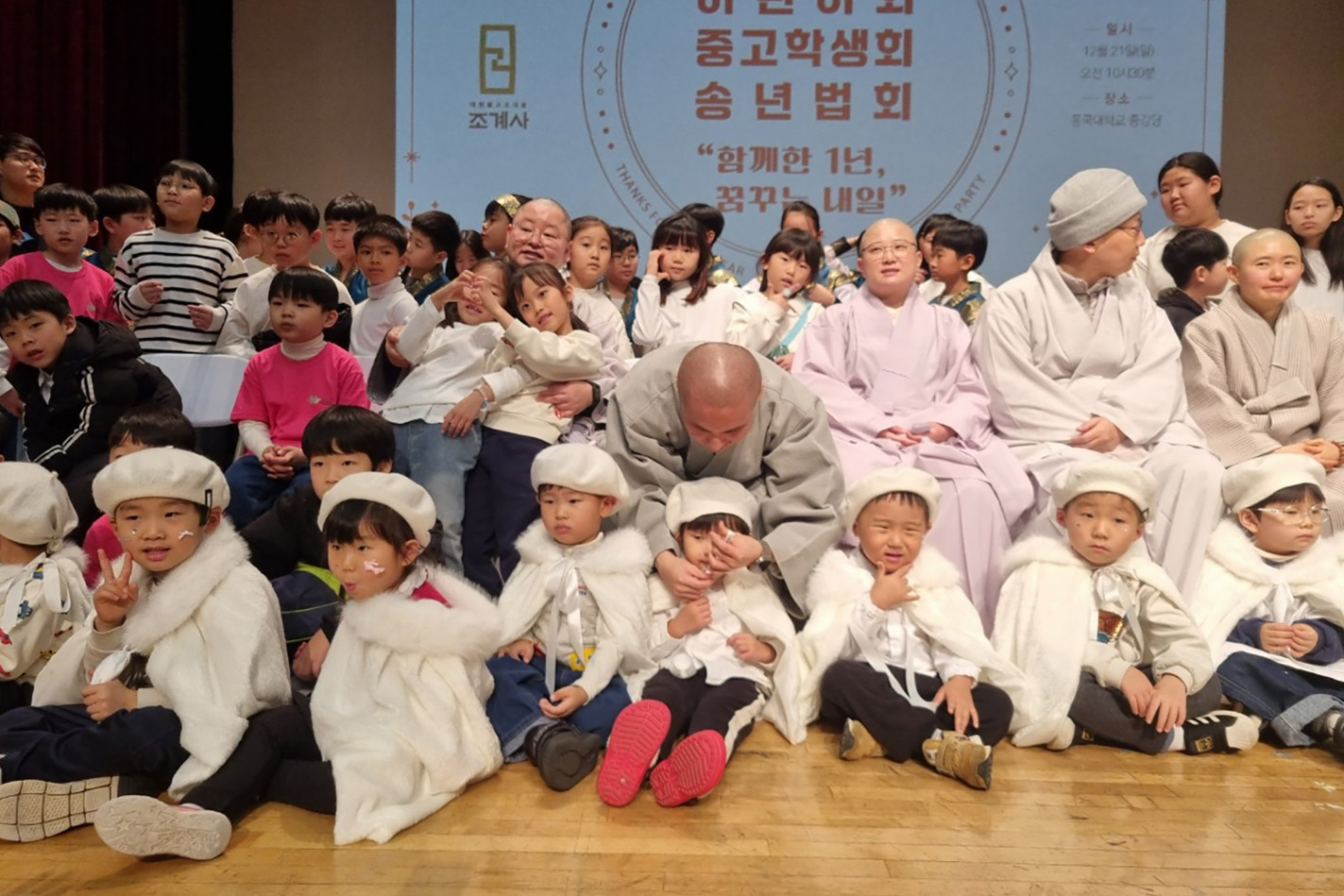 조계사 저학년 어린이법회는 12월 21일 동대 중강당에서 2025년 송년법회를 봉행하며 한 해의 신행 활동을 뜻깊게 마무리하였다. 흰 티셔츠와 청바지를 단정하게 맞춰 입은 법우들은 이른 아침부터 리허설에 매진하며 활기찬 에너지와 정성스러운 무대로 대중의 큰 박수를 받았다. 특별히 이번 법회에서는 어린이 교리대회인 ‘나란다-범종을 울려라’에 수많은 저학년 법우들이 용기 있게 도전하여 그동안 갈고닦은 불교 지식을 마음껏 뽐내었다. 송년법회 직후 대회장으로 자리를 옮겨 지혜의 대결을 펼친 법우들은 도반들과 서로 응원하고 격려하며 잊지 못할 화합과 법연의 시간을 가졌다. 열정과 지혜가 어우러진 이번 행사는 우리 저학년 법우들이 부처님의 가르침 속에서 한 뼘 더 성장했음을 증명하는 환희로운 장이었다.