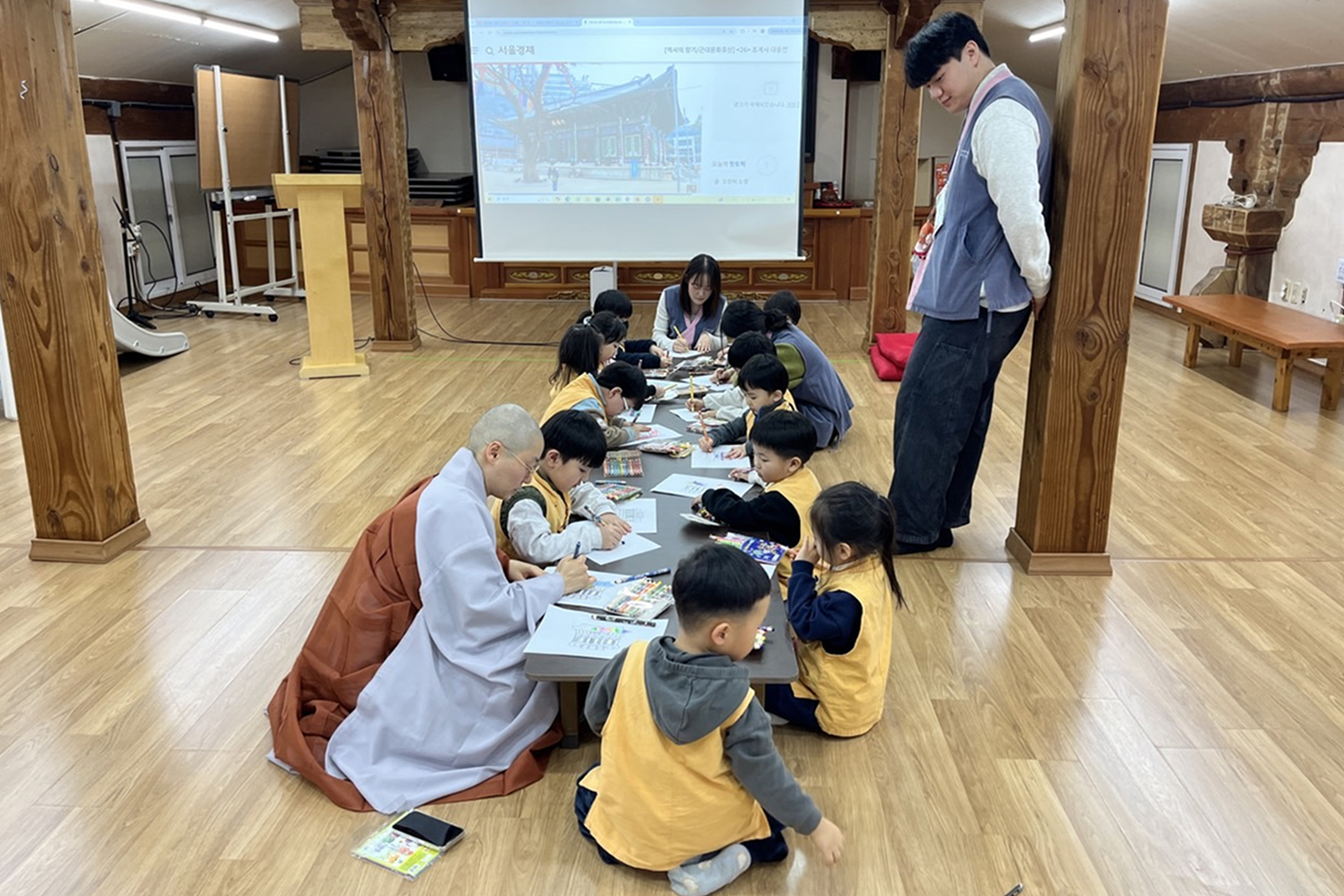 조계사 아기붓다 유아법회는 1월 18일 일요일 오전 10시 30분, 장소를 대설법전으로 옮겨 ‘조계사 그리기 법회’를 정성스럽게 봉행하였다. 유아 법우들은 매주 마주하는 조계사의 풍경과 부처님을 도화지 위에 순수한 눈으로 담아내며 자신만의 신심을 예술로 표현하였다. 대설법전을 가득 채운 천진불들의 그림 그리는 소리와 해맑은 웃음소리는 겨울 추위를 녹일 만큼 따뜻한 감동을 선사하였다. 법회를 마친 후 만발공양간에서 점심 공양을 함께한 법우들은 한층 깊어진 불심과 창의성을 뽐내며 1월의 셋째 주 정진을 원만히 회향하였다.