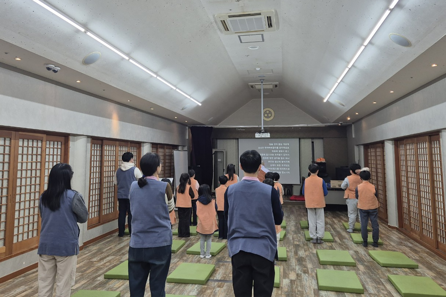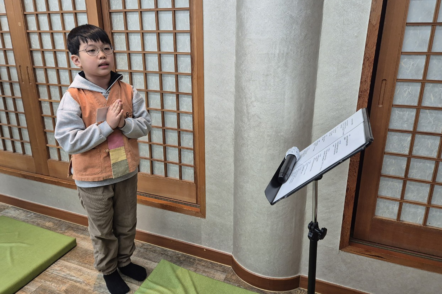 조계사 저학년 어린이법회는 1월 18일 안심당에서 부처님의 가르침을 깊이 있게 배우는 ‘신년 교리법회’를 봉행하였다. 법우들은 10시 정각에 시작된 1부 법회를 통해 올바른 신행 생활의 기초를 다지고, 도반들과 함께 교리 지식을 나누며 지혜로운 불자로 성장할 것을 다짐하였다. 만발공양간에서 점심 공양을 마친 후 이어진 2부 활동에서는 지난주 합동법회의 활기를 이어받아 활기찬 소통과 배움의 시간을 가졌다. 특히 법우들은 개인 컵과 물병을 지참하여 일회용품 줄이기에 앞장섰으며, 법회 가방을 챙기는 등 의젓한 신도 예절을 몸소 실천하였다. 12시 30분 안심당에서 원만히 회향한 이번 법회는 새해 초입부터 지덕체를 고루 갖춘 어린 불자들의 열기 속에 마무리되었다.