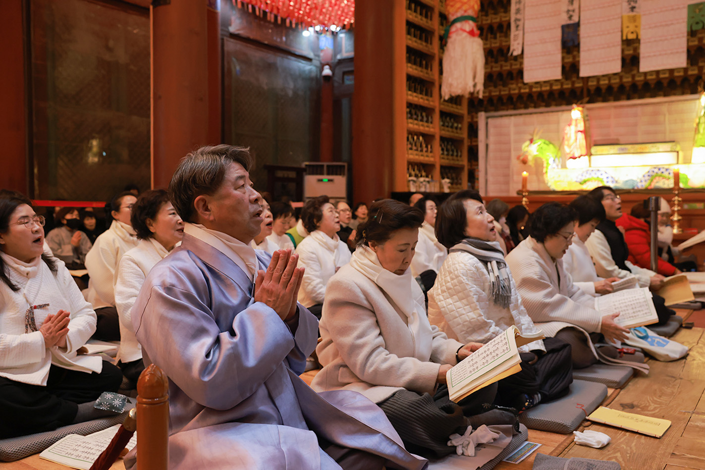 26년 1월 25일(일) 오후 8시 성도재일 용맹정진기도가 봉행되었다.