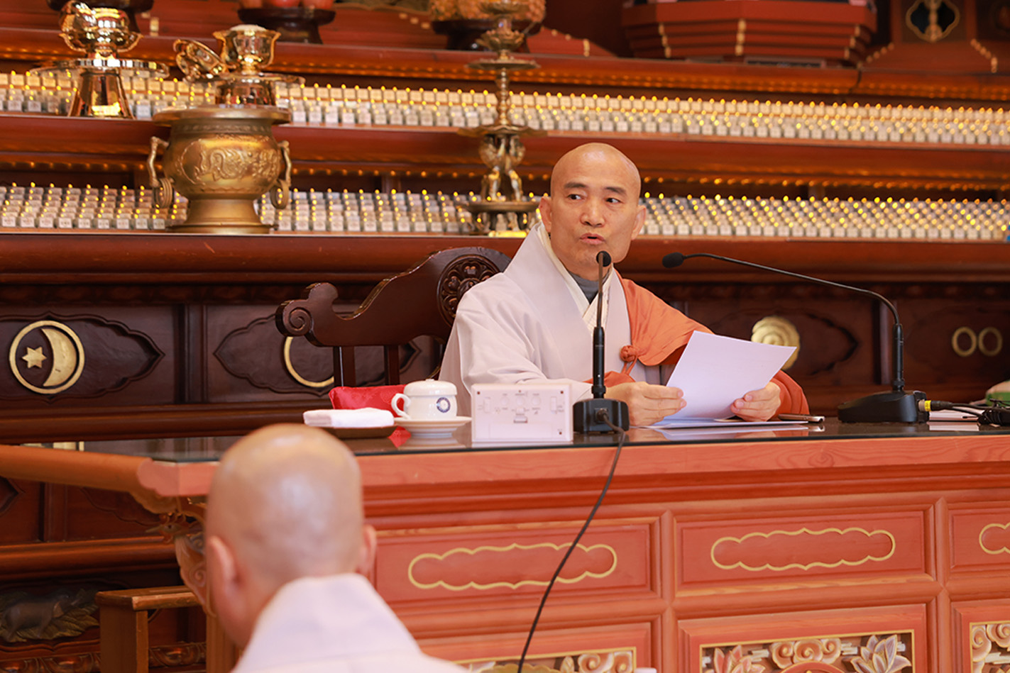 조계사 주지 담화 원명 스님은 《온세상이 태평한 봄날이요. 사방 어디에도 아무런 걱정거리 없기를 》이라는 주제로 법문을 전했다.