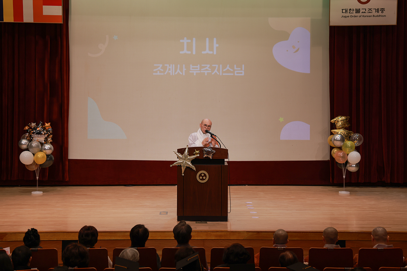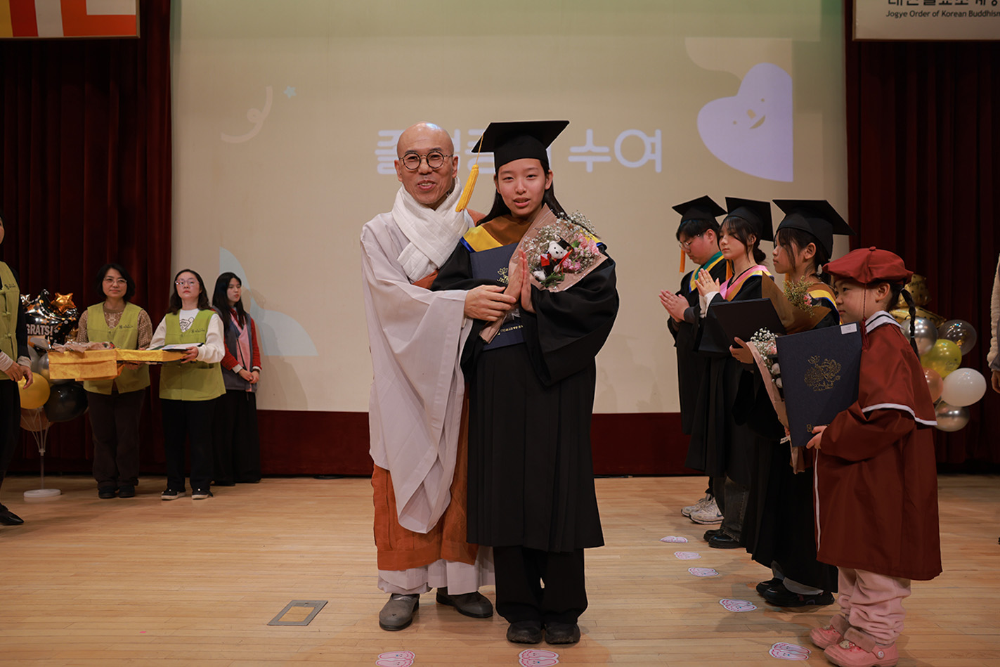 여러분의 자리는 앞으로 조금씩 바뀌겠지만, 부처님의 가르침을 실천하며 함께 성장해 나가는 도반이라는 사실은 변함이 없습니다. 앞으로 여러분이 보여줄 새로운 모습들을 설레는 마음으로 기다리겠습니다. 다시 한 번 졸업을 진심으로 축하드리며, 여러분의 앞길에 부처님의 가피와 복덕이 늘 함께하기를 발원합니다."라고 축사를 전했다.