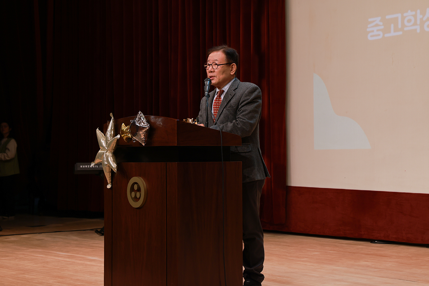 무애 이승현 신도총회장은" 오늘 이 자리에 선 여러분을 보니 저 역시 큰 기쁨을 느낍니다. 동시에 '언제 다시 이런 모습으로 돌아갈 수 있을까' 생각하니 가슴이 먹먹해지기도 합니다. 여러분의 성장은 우리 공동체의 가장 큰 기쁨입니다. 조계사의 보배인 어린이·중고등부 졸업생 여러분의 얼굴을 마주하니 대견하고 기특한 마음이 벅차오릅니다. 또한 자녀들을 부처님의 제자로 올곧게 키워주신 부모님들께도 신도회를 대표하여 깊은 감사와 축하의 말씀을 드립니다.