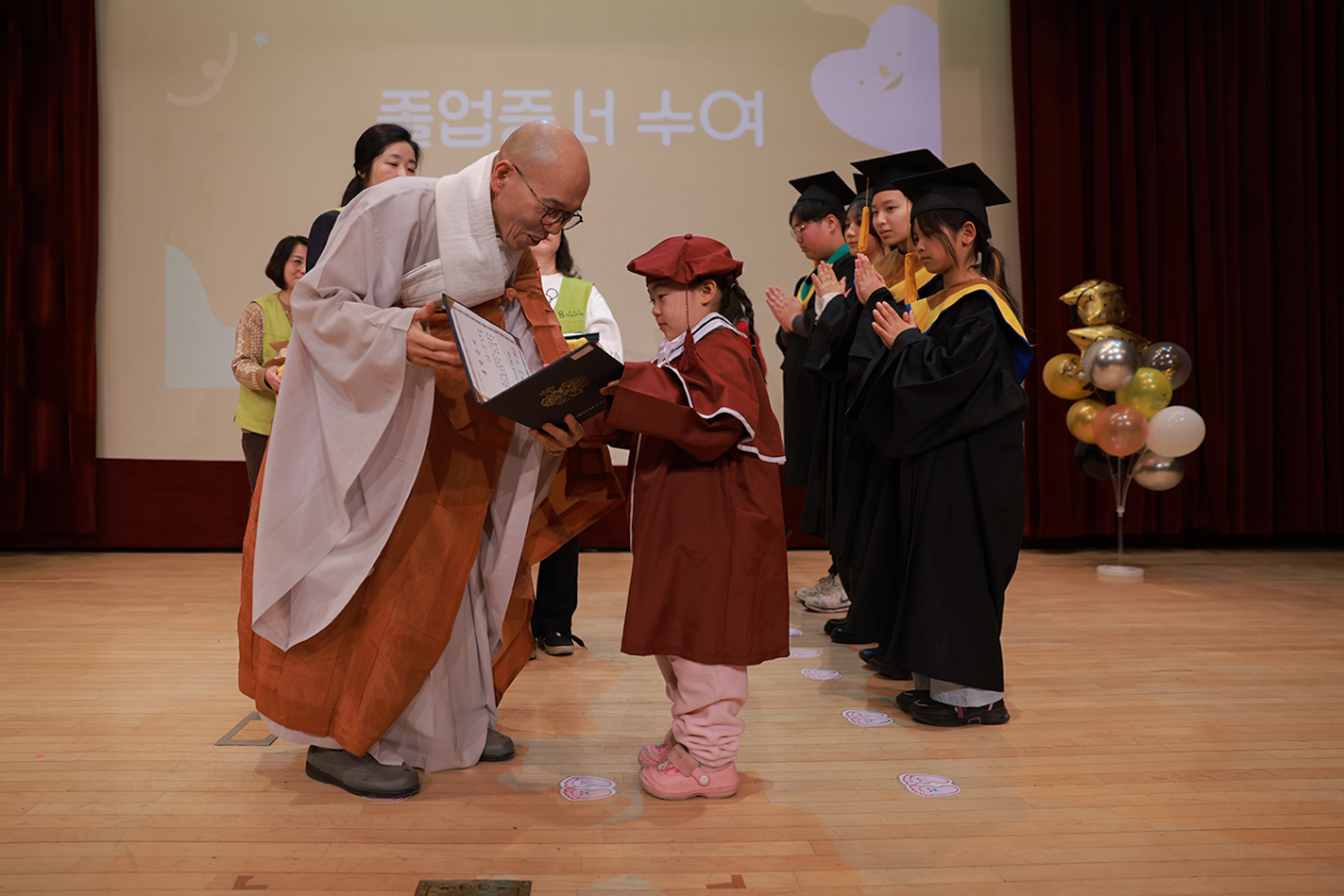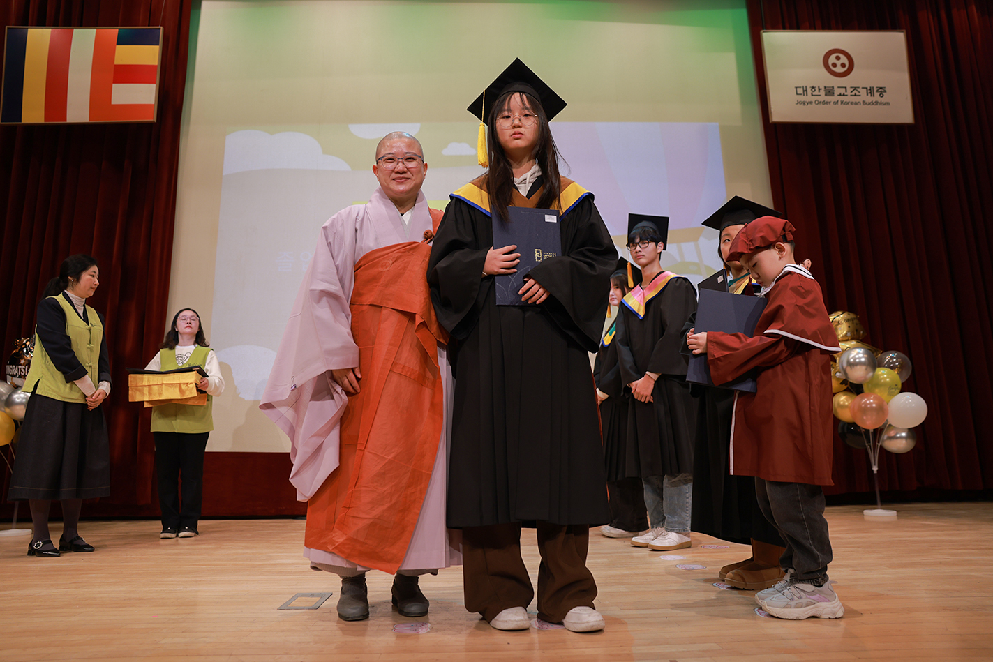 여러분 덕분에 배려의 마음가짐뿐 아니라, 진정한 인연이 무엇인지 배울 수 있었습니다. 또한 그동안 보이지 않는 곳에서 도움을 주신 스님들과 봉사해 주신 어머니·아버지들께도 졸업생을 대표하여 깊은 감사의 인사를 전합니다. 많은 분들의 사랑 덕분에 저 역시 지난 시간 동안 불교학교에서 건강하고 따뜻한 시간을 보낼 수 있었습니다.