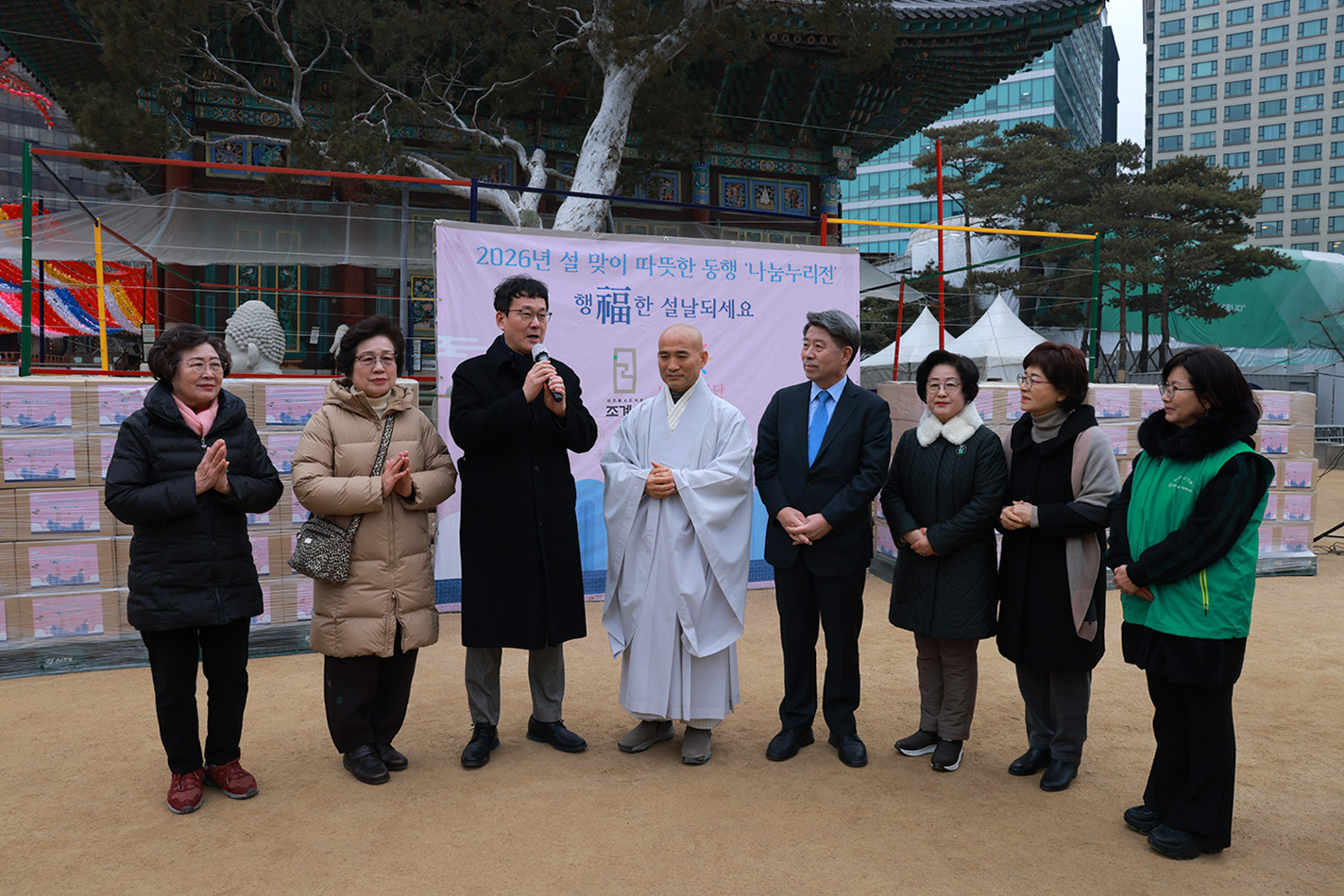 2월 10일 오후 2시 조계사 백송 앞마당에서 <2026년 설맞이 따뜻한 동행 '나눔누리전'>이 진행되었다.