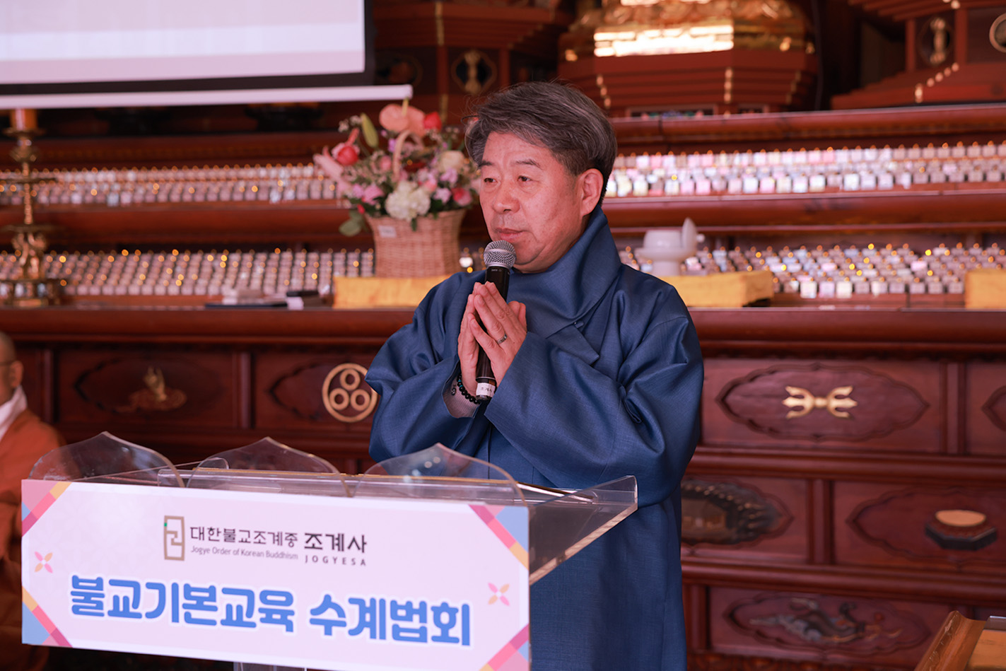 새로운 것을 만난다는 것은 환희심이 넘치는 일입니다. 모든 것이 궁금하고 배우고 싶을 때이기도 합니다. 이것을 ‘초발심’이라고 합니다. 초발심 때에는 부처님의 가르침을 잘 만나야 합니다. 우리 조계사와 신도회가 부처님의 가르침을 올곧게 안내해드리겠습니다. 그동안 배운 가르침을 되새기고, 오늘 받은 계를 받들어 지켜 나가신다면 참다운 불자로 거듭나게 되실 것입니다. 함께 수료하는 도반님들과 경전반, 불교대학 등 많은 가르침을 배우다 보면, 부처님의 크신 가피력을 직접 체험하실 수 있을 것입니다. 불자님들의 가정에 지혜와 가피가 가득하시길 바랍니다. ” 라고 축사를 전했다.