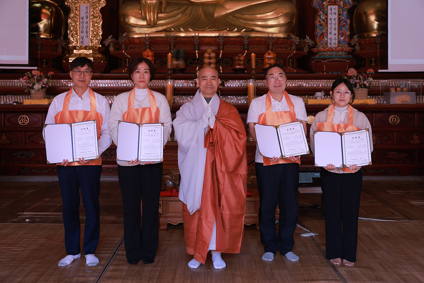 앞으로 적극적으로 보살의 삶을 실천하며, 보시·전법·방생 등 선행을 통해 이 가르침을 널리 나누는 일이 중요합니다. 다시 한 번 고생 많으셨고, 수료와 수계를 진심으로 축하드립니다.” 라고 말씀을 전했다.
