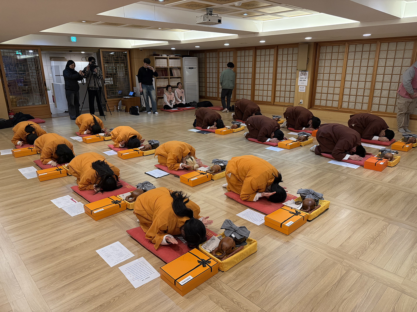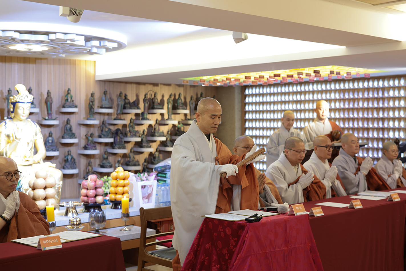 입재식은 사전 안내 멘트를 시작으로 주지 담화 스님의 입장과 삼배, 삼귀의(한문), 행자의 삼배, 출가 허락의 말씀 순으로 엄숙하게 진행되었다.