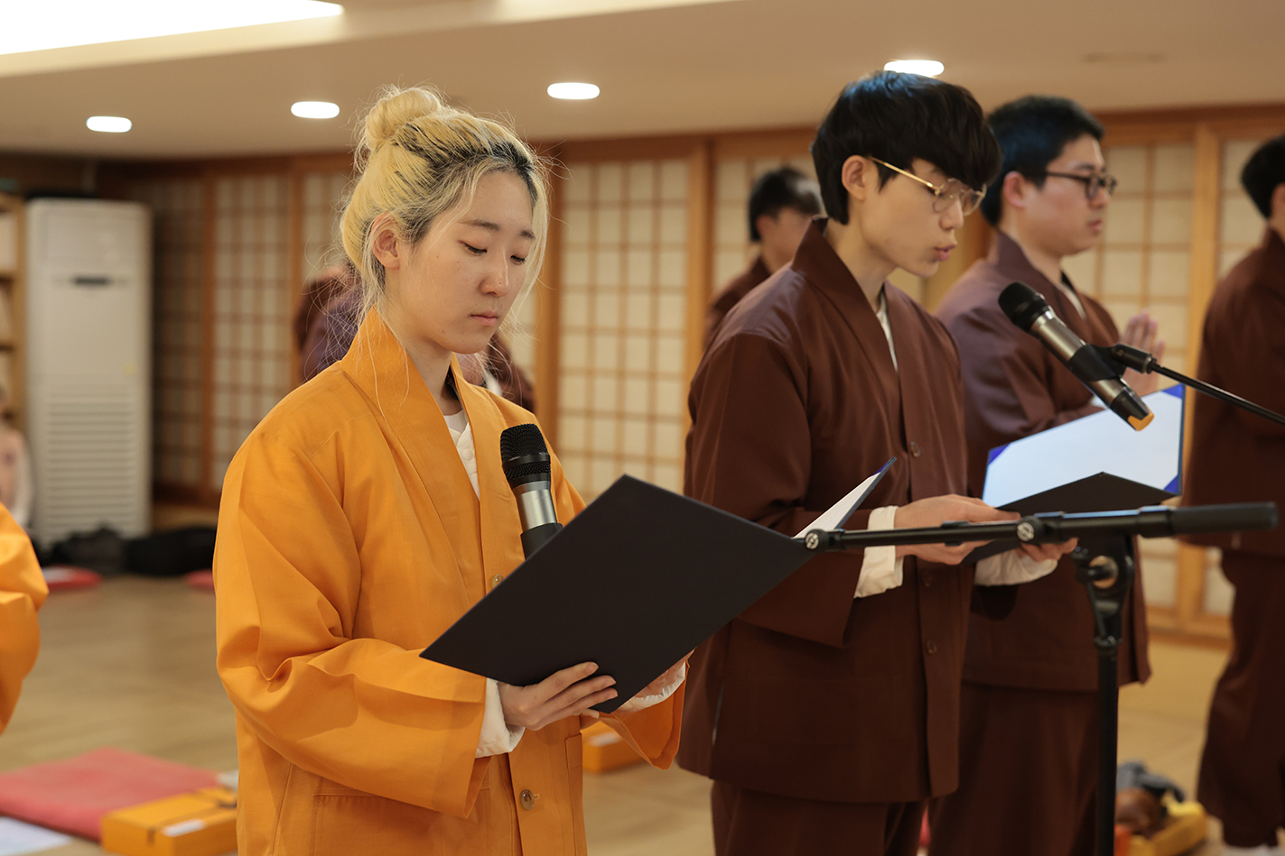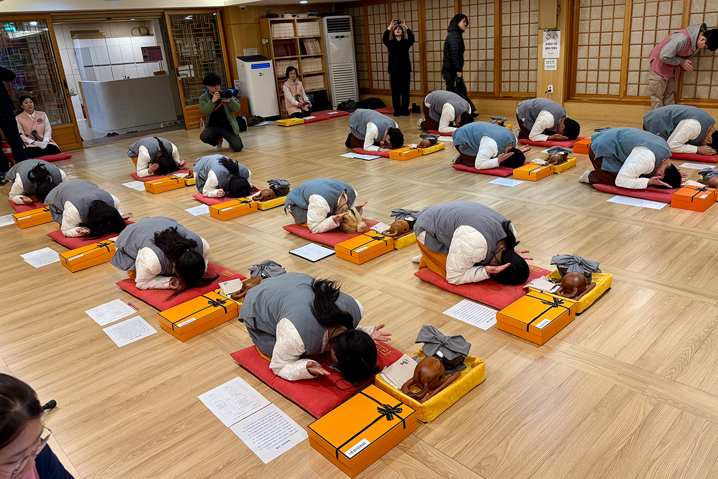 2월 22일(일) 저녁 7시, 관음전에서 불기 2570(2026)년 ‘제1차 청년·대학생 단기출가 입재식'을 봉행했다. 이번 단기출가에는 대학생 전법단·대불련 소속 남자 6명, 여자 8명 등 총 14명의 대학생 행자가 동참해 오는 2월 27일(금)까지 5박 6일간의 출가 수행 여정을 시작했다. 단기출가는 경쟁과 속도에 지친 MZ세대에게 부처님의 품 안에서 자신을 돌아보는 기회를 제공하기 위해 마련된 프로그램이다.