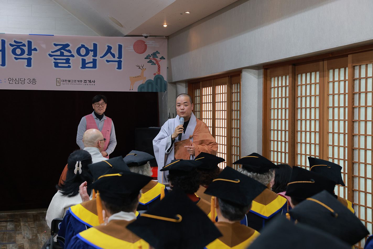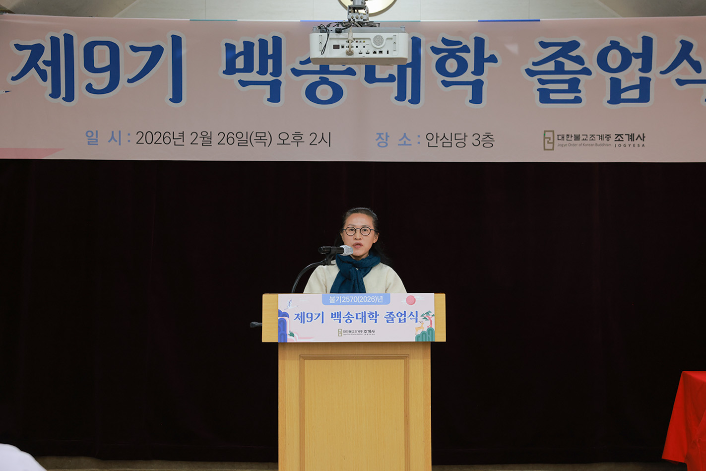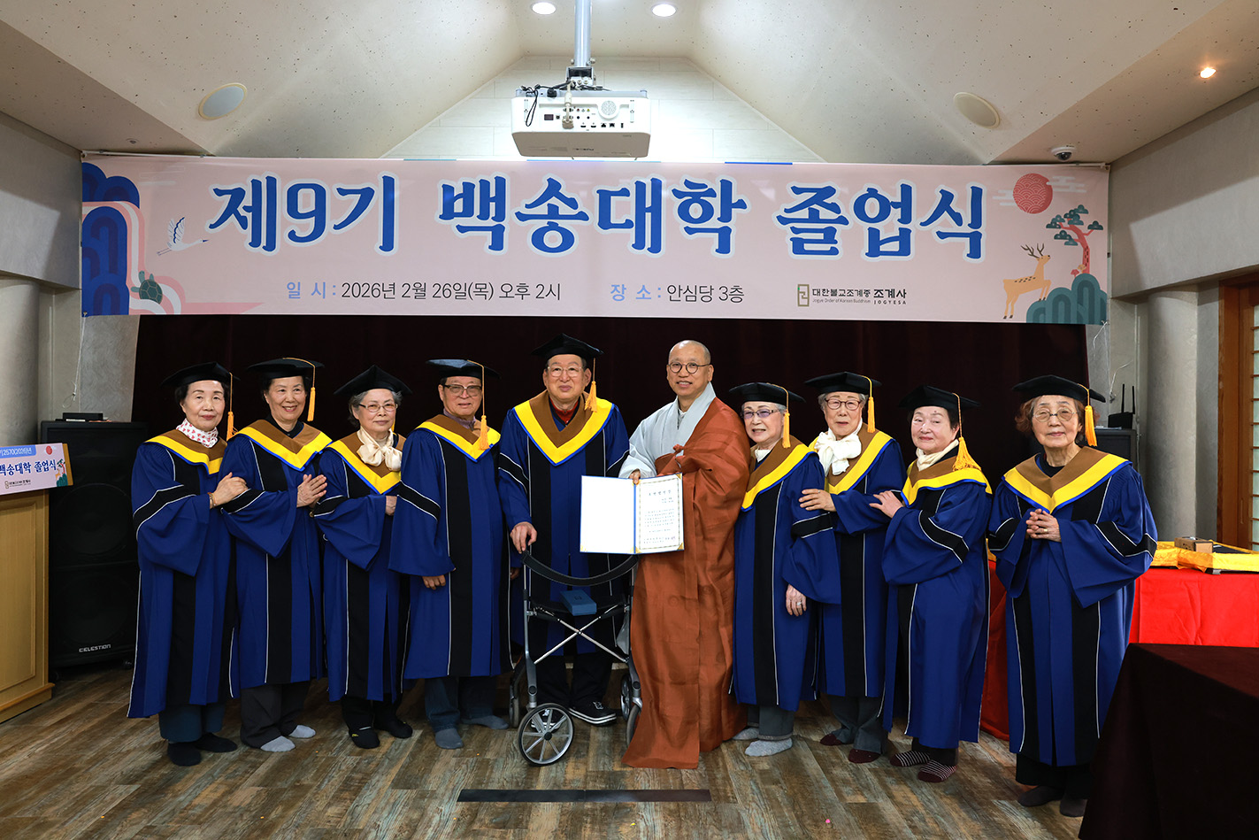 나눔과 배려로 실천해 오신 삶에 깊이 감사드리며, 앞으로도 마음의 평안을 얻고 늘 건강과 웃음이 함께하시길 기원합니다. 저 또한 어르신들이 존중받고 행복한 삶을 누리실 수 있도록 최선을 다하겠습니다. 다시 한 번 진심으로 졸업을 축하드리며, 늘 부처님의 가피가 함께하시길 바랍니다..” 라고 축사를 전했다.