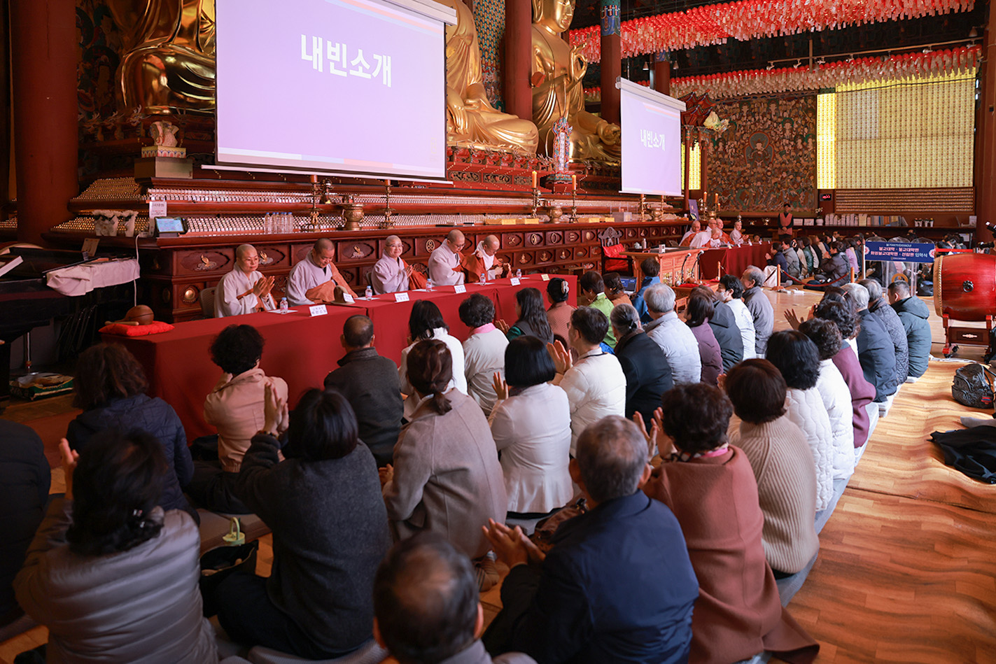무애 이승현 신도총회장은 "존경하는 주지 스님과 여러 스님, 사부대중 여러분과 함께하게 되어 기쁘게 생각합니다.