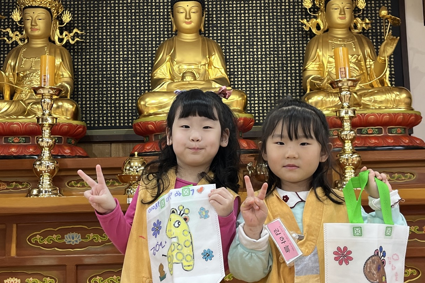 조계사 <아기붓다 유아법회>는 지난 3월 15일 대설법전 유아법당에서 새싹 불자들의 오감을 만족시키는 흥미로운 ‘만들기 법회’를 봉행하였다. 이날 법회에 참석한 아기붓다들은 지도법사 스님과 선생님들의 도움을 받아 하얀 에코백 위에 서툰 손길이지만 진지한 표정으로 자신만의 알록달록한 그림을 그리며 개성을 뽐냈다. 아이들은 코끼리와 기라프 등 불교적 상징과 좋아하는 동물 캐릭터를 색칠하며 창의력을 키웠고, 완성된 에코백을 서로에게 자랑하며 천진난만한 웃음꽃을 피웠다. 특히 완성된 꿈 가방을 부처님 전에 올리며 건강하고 지혜롭게 자라기를 발원하는 시간은 천진불들의 맑은 신심을 엿볼 수 있는 감동적인 순간이었다. 조계사 유아법회는 앞으로도 아이들의 눈높이에 맞춘 다채로운 체험 프로그램을 통해 아기붓다들이 부처님의 품 안에서 행복하게 성장할 수 있도록 정진할 계획이다.