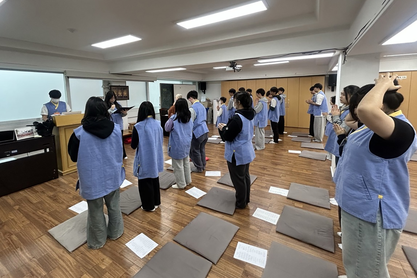 조계사 청소년법회는 지난 3월 15일 교육문화센터에서 ‘인과연과 연기법’을 주제로 부처님의 핵심 가르침을 배우고 도반들과 친목을 다지는 정기 법회를 봉행하였다. 1부 법요식에서 법우들은 모든 현상이 서로 연결되어 있다는 연기법의 원리를 경청하며 일상의 소중함을 되새겼으며, 이어진 2부에서는 각자 정성껏 준비해온 간식을 나누는 ‘과자 파티’와 보드게임을 통해 즐거운 화합의 시간을 가졌다. 특히 정기 법회 시작 전인 9시 30분부터 진행된 ‘미니 프로그램’은 법우들이 서두르지 않고 여유로운 마음으로 법석에 앉아 신행 생활에 집중할 수 있도록 돕는 유익한 계기가 되었다. 보드게임을 즐기며 환하게 웃는 법우들의 모습 속에서 조계사 청소년 불자들만의 건강하고 밝은 에너지를 확인할 수 있었으며, 간식을 나누는 작은 손길마다 부처님의 자비 정신이 자연스럽게 스며들었다. 조계사 청소년법회는 앞으로도 깊이 있는 교리 공부와 청소년들의 눈높이에 맞춘 소통 프로그램을 병행하여 법우들이 지혜로운 리더로 성장할 수 있도록 정진할 계획이다.