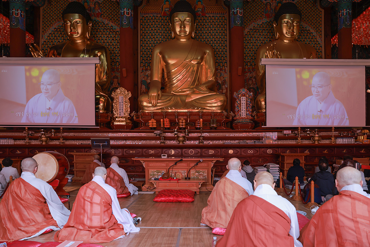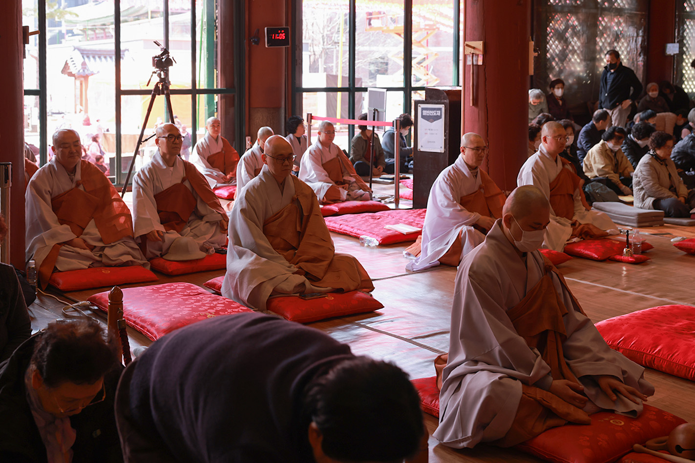 조계사는 3월 26일(음, 2월 8일) 대웅전에서 출가·열반재일 8일기도 입재법회를 봉행했다.