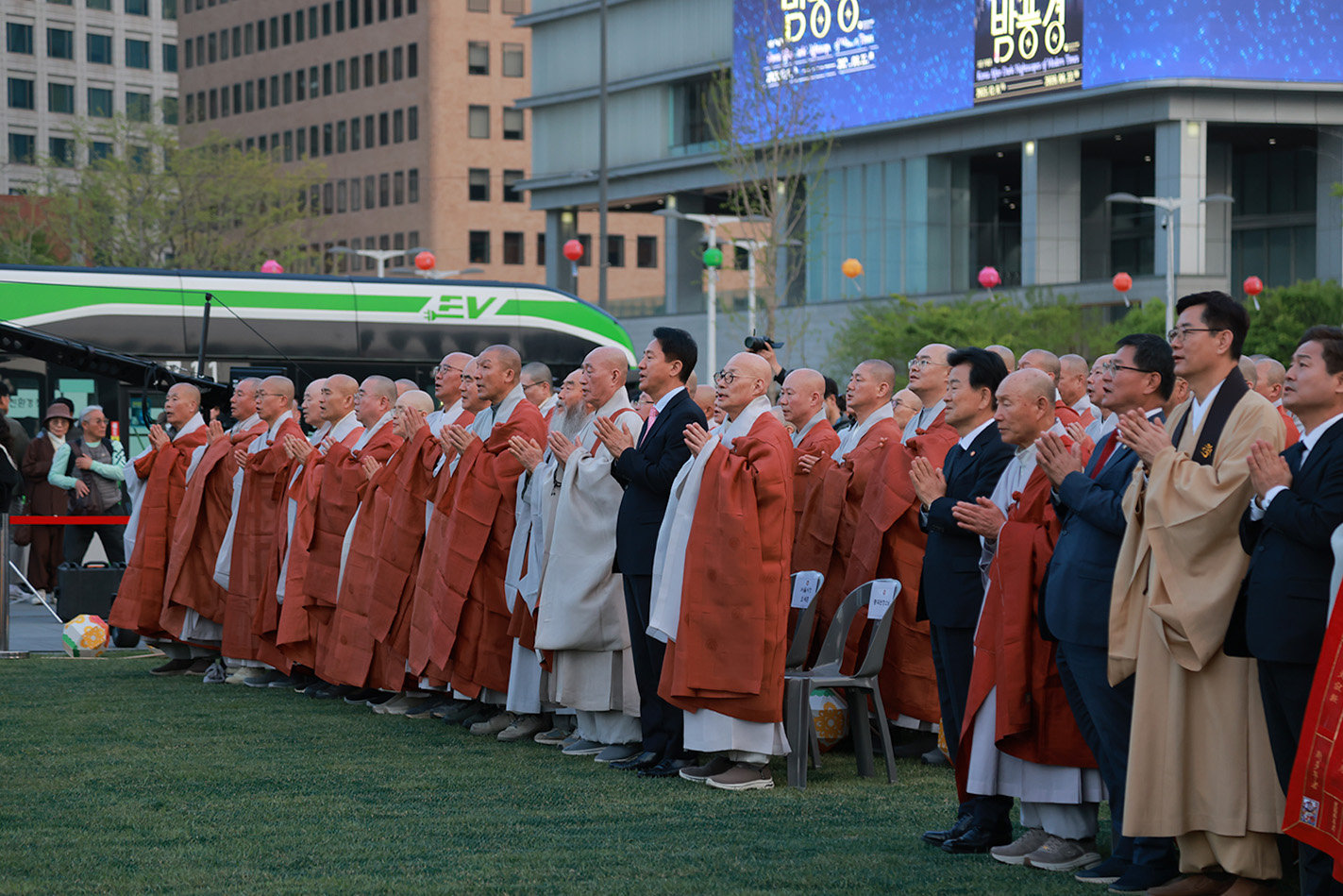 오는 5월 24일, 불기 2570(2026)년 부처님오신날을 축하하며 2026 부처님 오신날 점등식이 4월 23일(수) 오후 7시 광화문 광장에서 봉행됐다. 대한불교조계종 총무원장 진우스님과 조계사 주지 담화 원명스님을 비롯해 각 종단 대표 스님들, 오세훈 서울시장 등 이 참석한 가운데 점등식을 진행했다.