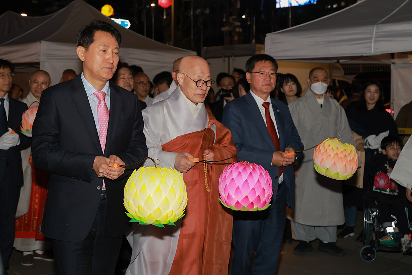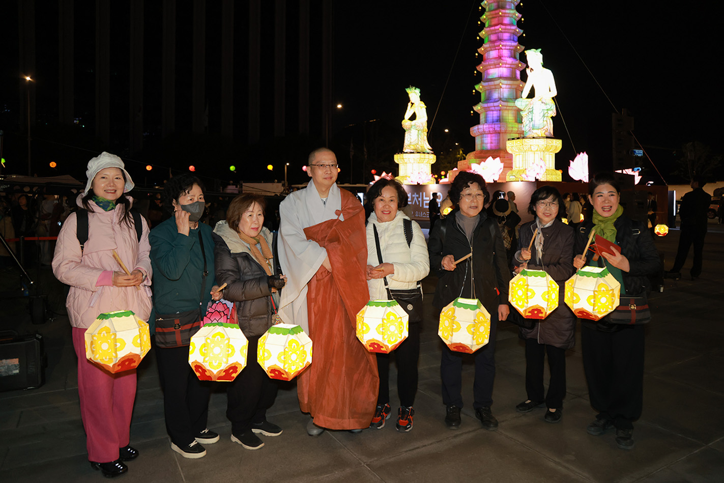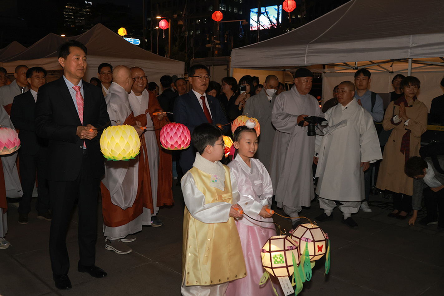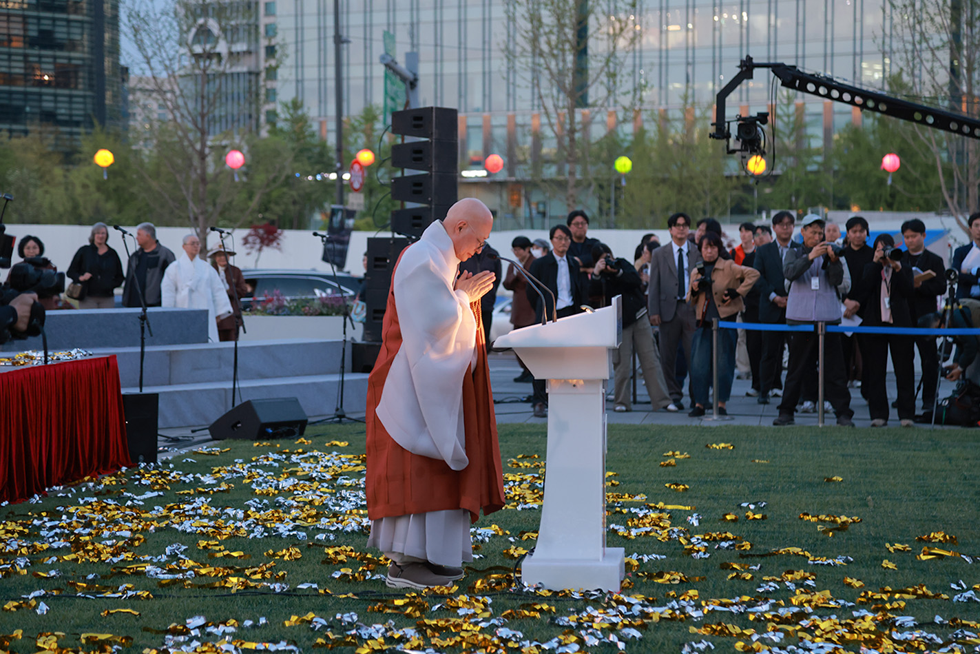 오늘 연등 제막 행사에서도 저마다의 소망과 희망을 담아 힘차게 한 걸음을 내딛고자 합니다. 부처님의 자비와 지혜를 이 광장에 널리 밝히고 세상 곳곳으로 퍼져 나가게 하겠습니다."라고 말했다.