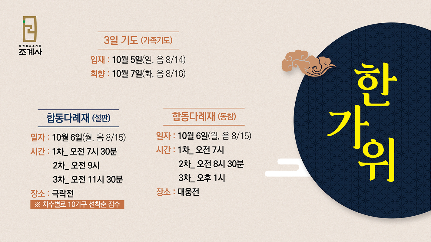 [마감] 한가위 3일기도 및 한가위 합동 다례재