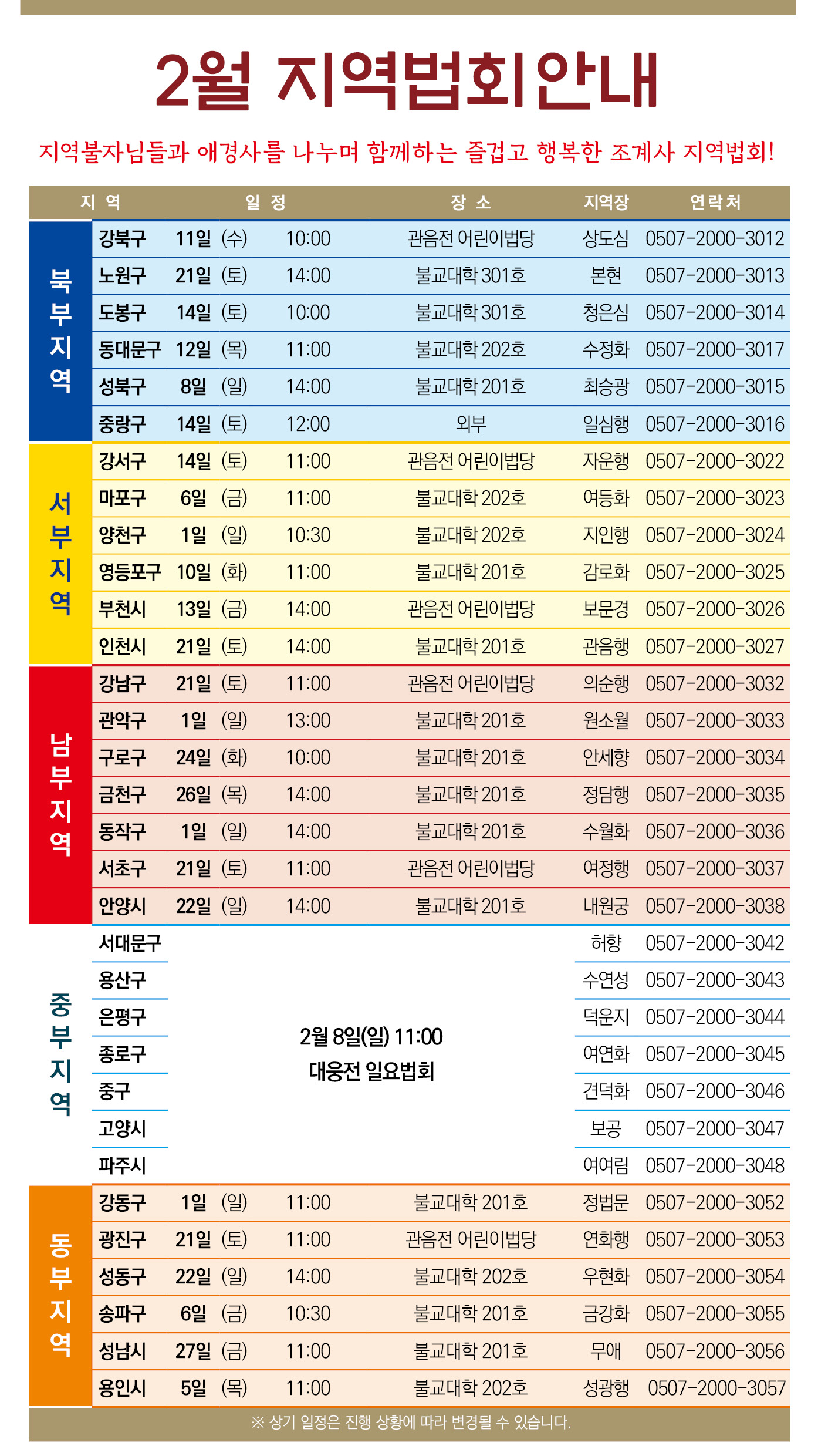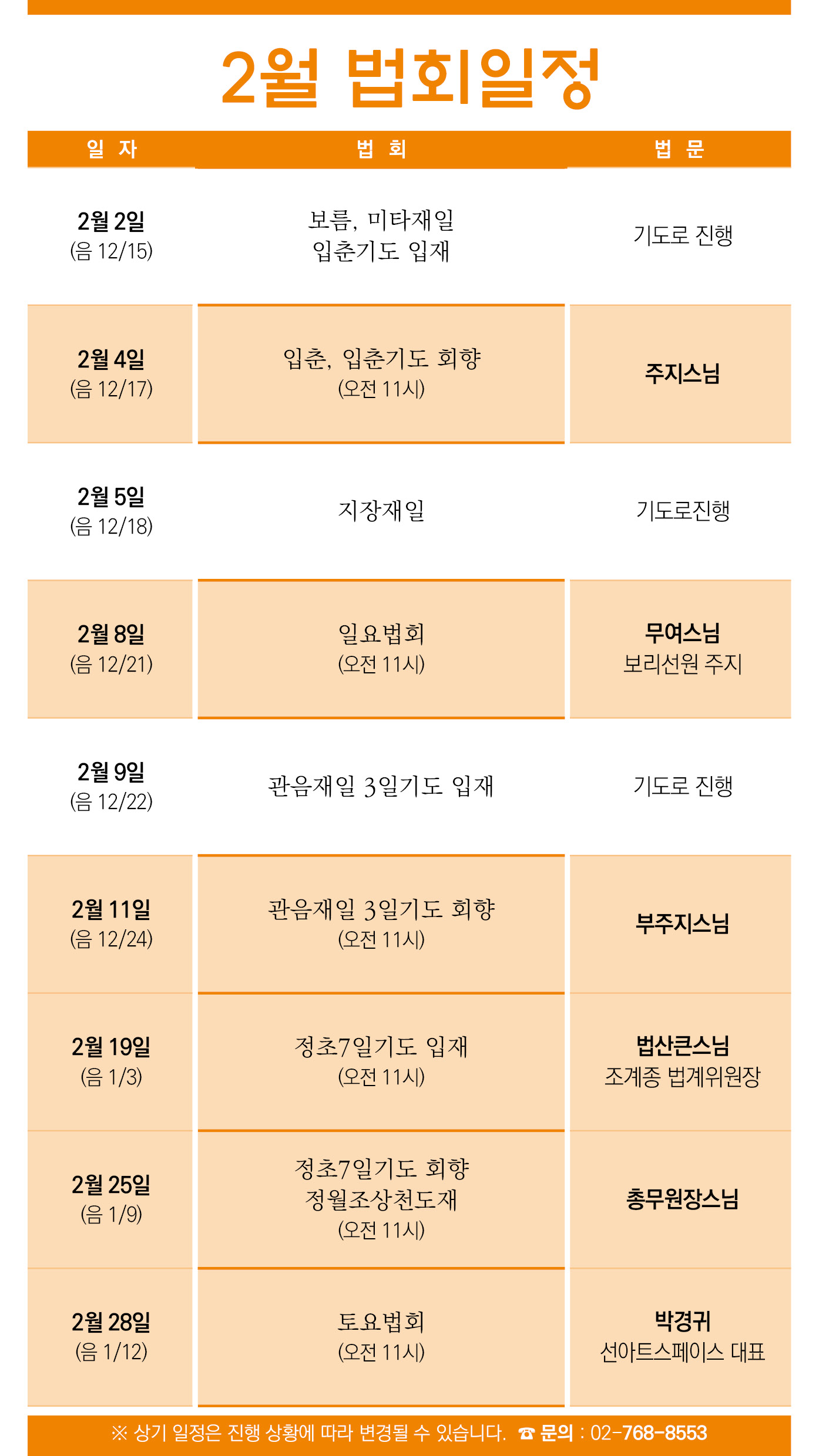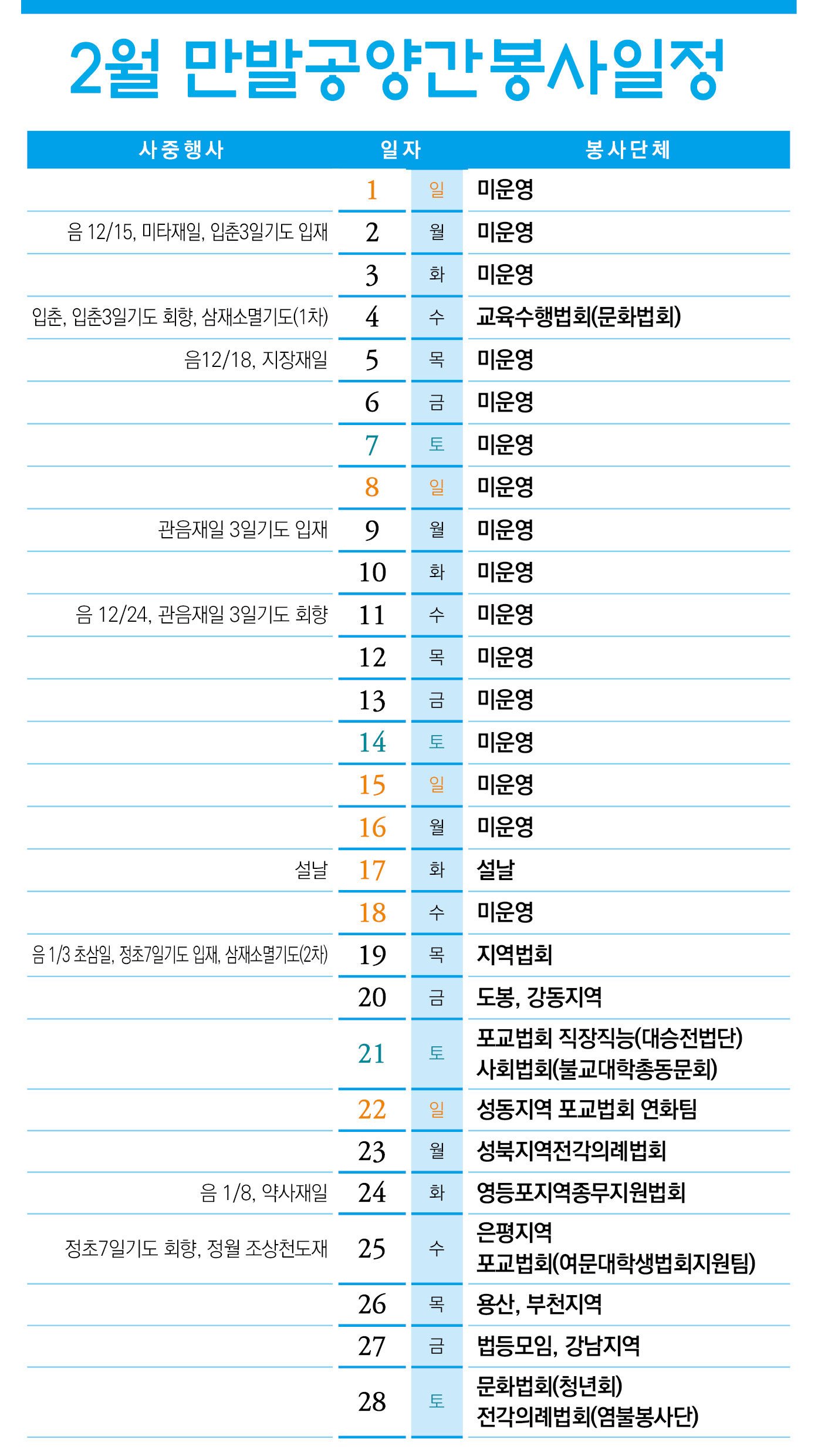 [마감] 2026년 2월 지역법회, 만발공양간 봉사 일정