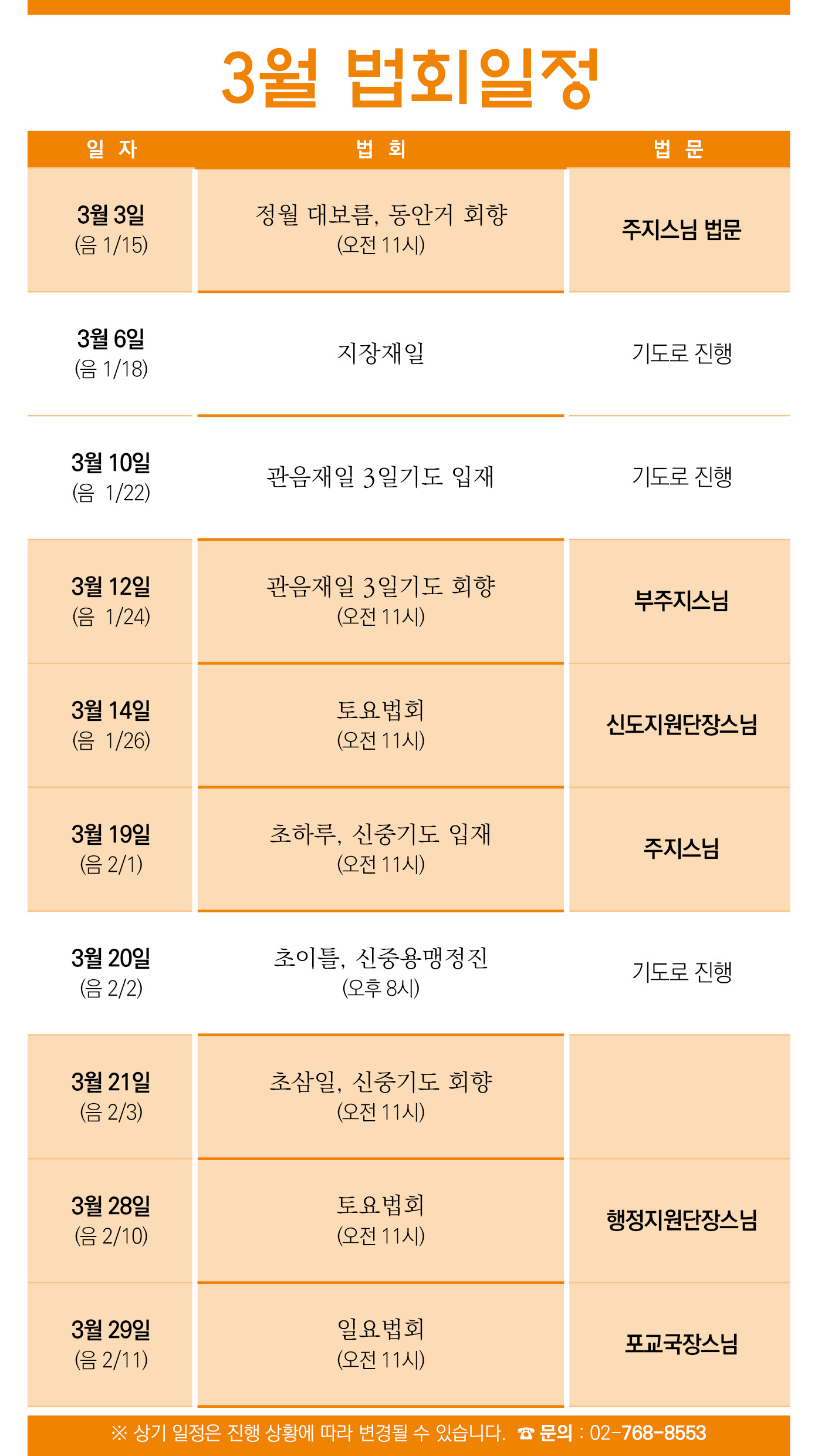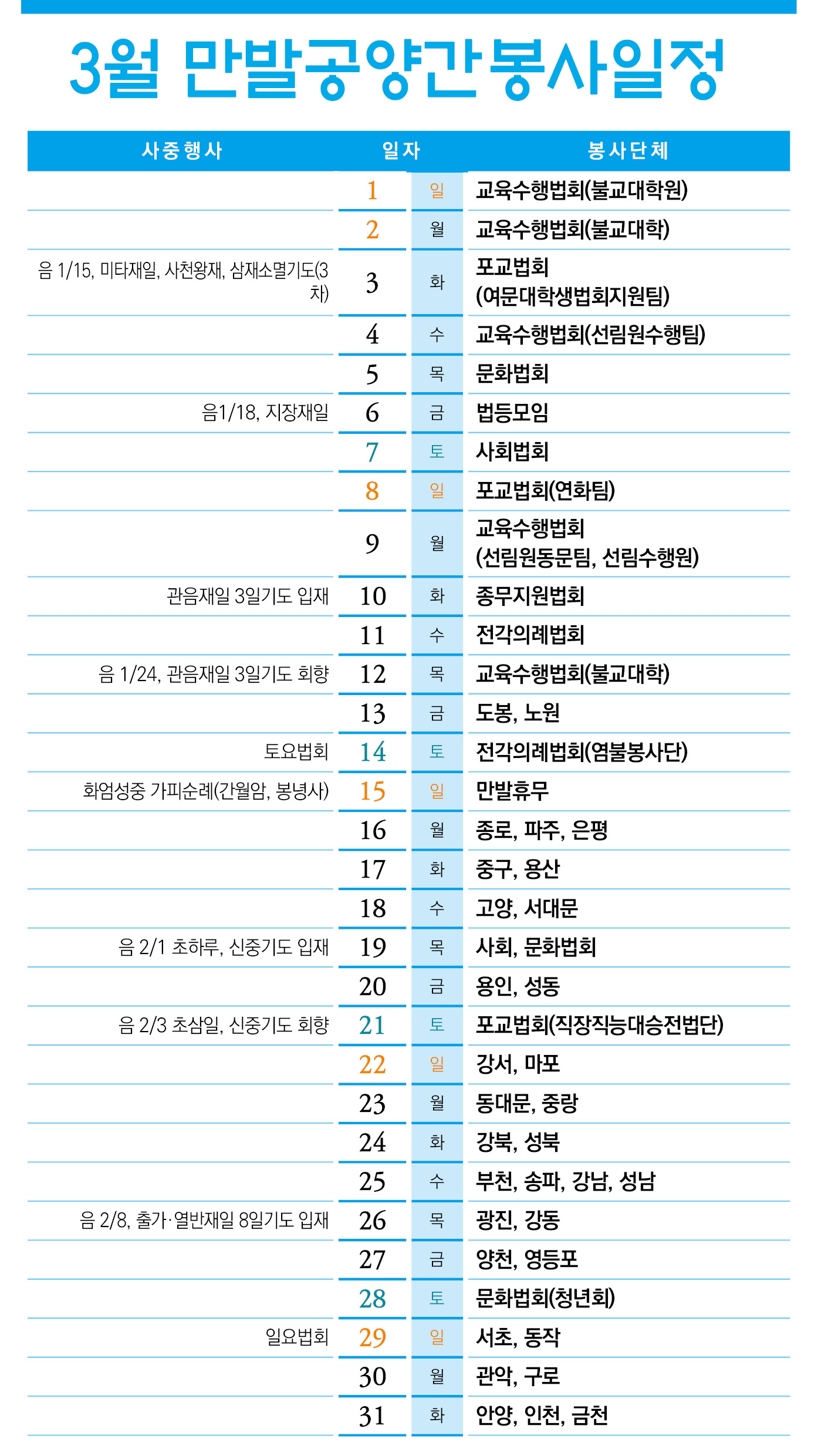 [마감] 2026년 3월 지역법회, 만발공양간 봉사 일정